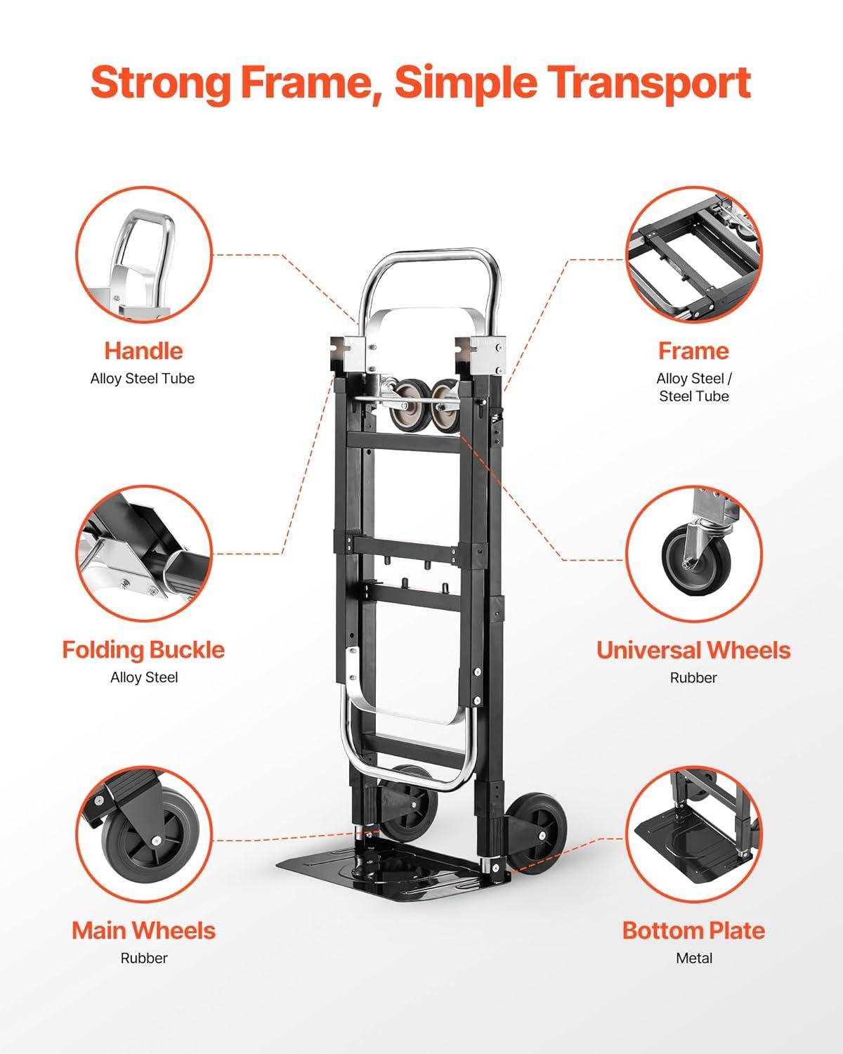 imageVEVOR Aluminum Truck 2 in 1 800 lbs Load Capacity Heavy Duty Industrial Convertible Folding Hand Truck and Dolly Utility Cart Converts from Hand Truck to Platform Cart with Rubber Wheels500LBS