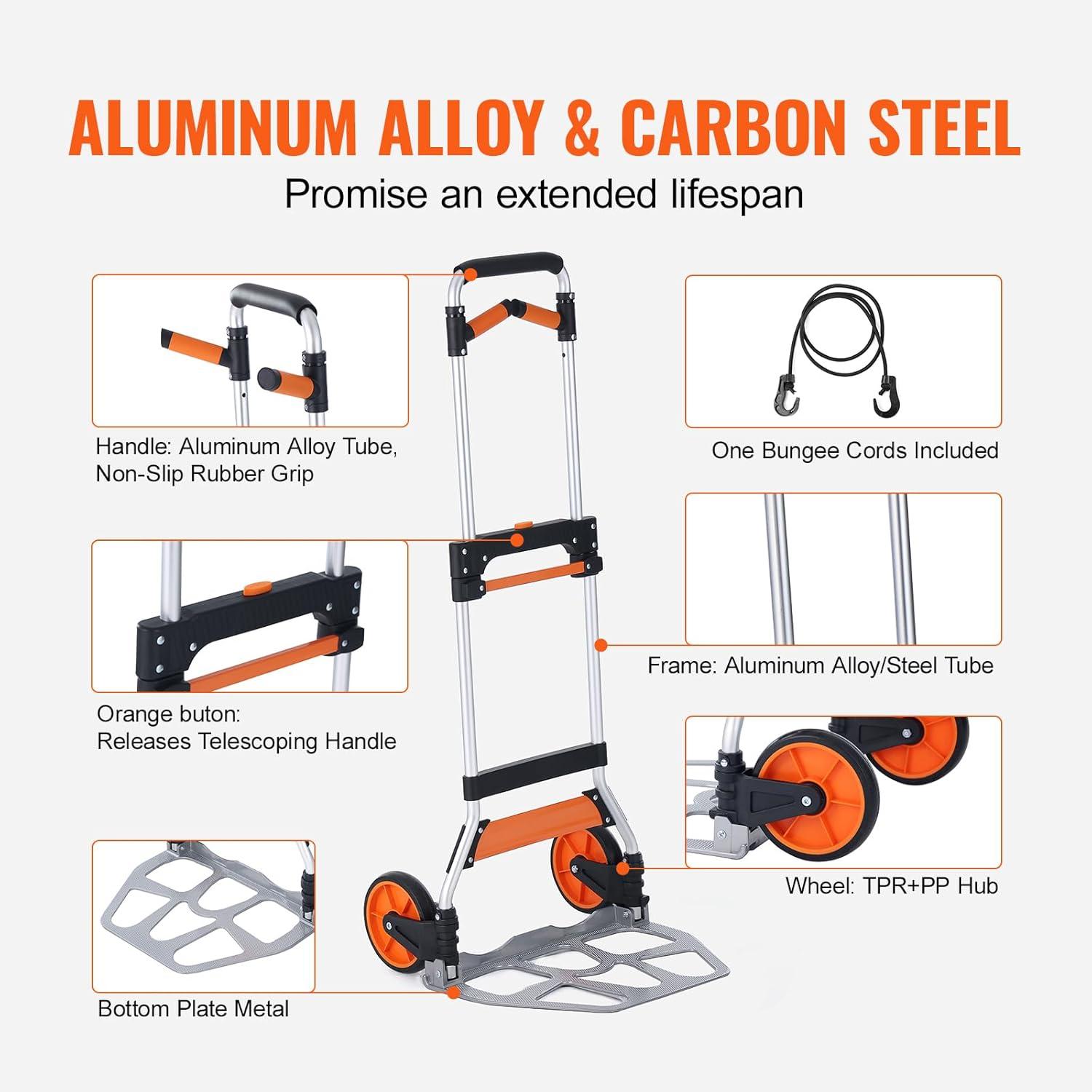 VEVOR Aluminum Truck, 2 in 1, 800 lbs Load Capacity, Heavy Duty Industrial Convertible Folding Hand Truck and Dolly, Utility Cart Converts from Hand Truck to Platform Cart with Rubber Wheels(Portable - 309LBS)