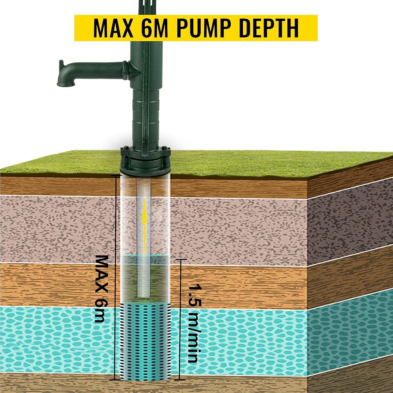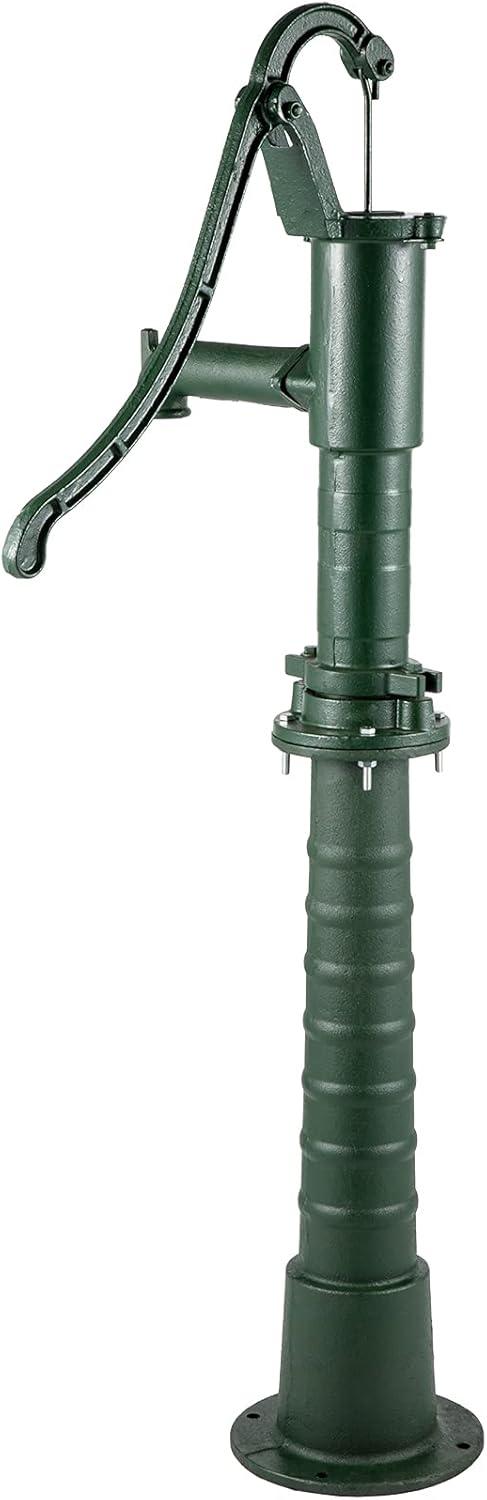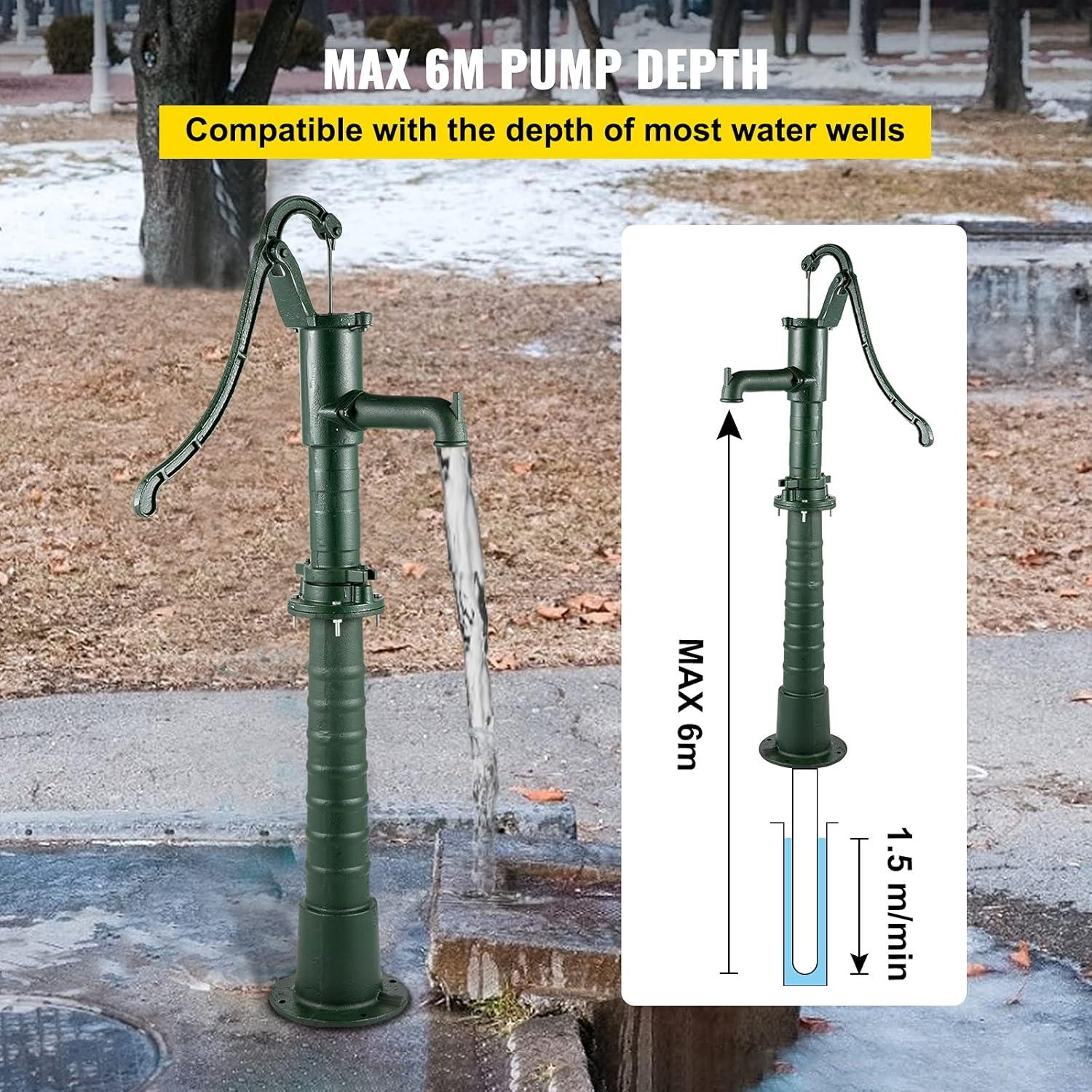 Antique Hand Water Pump: The pump features a large water flow and convenient operation. You can quickly pump the well water up by gently shake the handle up and down. The maximum pumping depth can reach 6 meters.