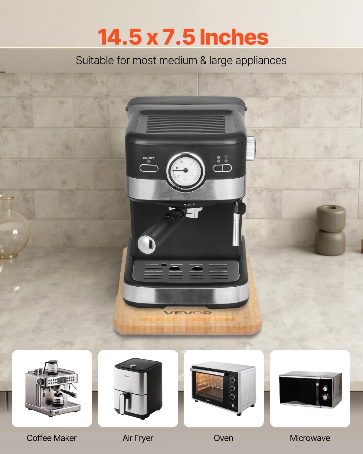 VEVOR Appliance Slider, Medium 14 x 9.5-inch, Rolling Sliding Tray with Rubber Wheels & Hollow Handle, Easy to Clean, Appliance Rolling Tray for Coffee Maker, Kitchen Countertop, Natural Wood(Deep – Small (14.5″D x 7.5″W))