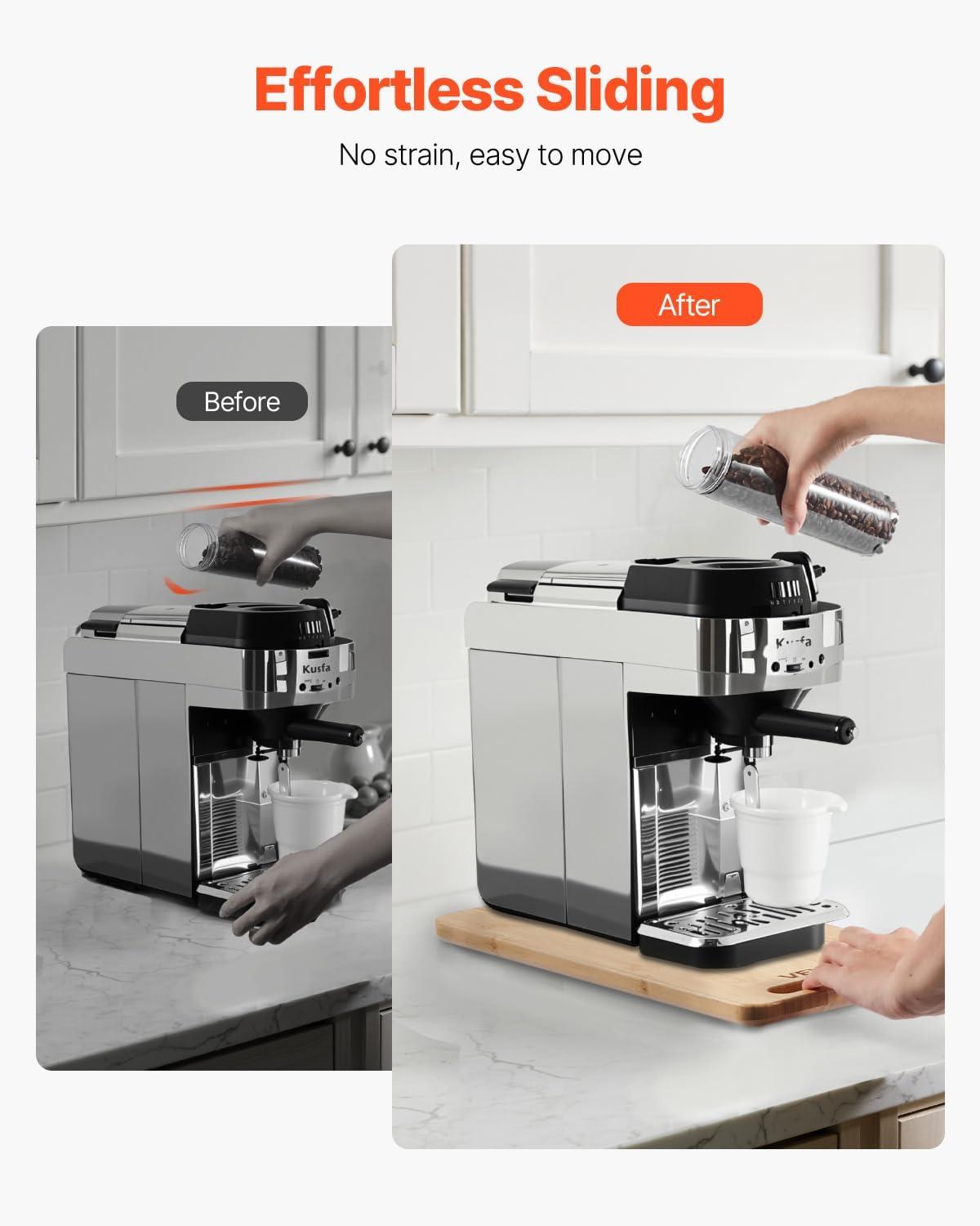 Effortless Sliding: The hollow handle design lets you move appliances with one hand, saving time and reducing the hassle of lifting. Our appliance rolling tray maximizes kitchen space while avoiding steam damaging cabinets.