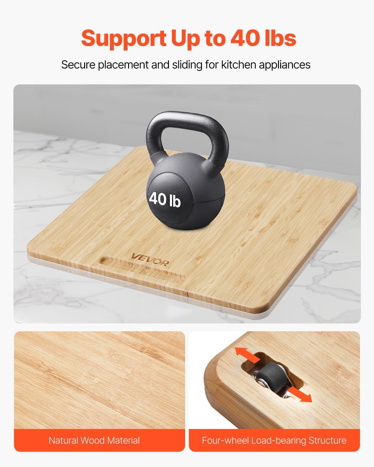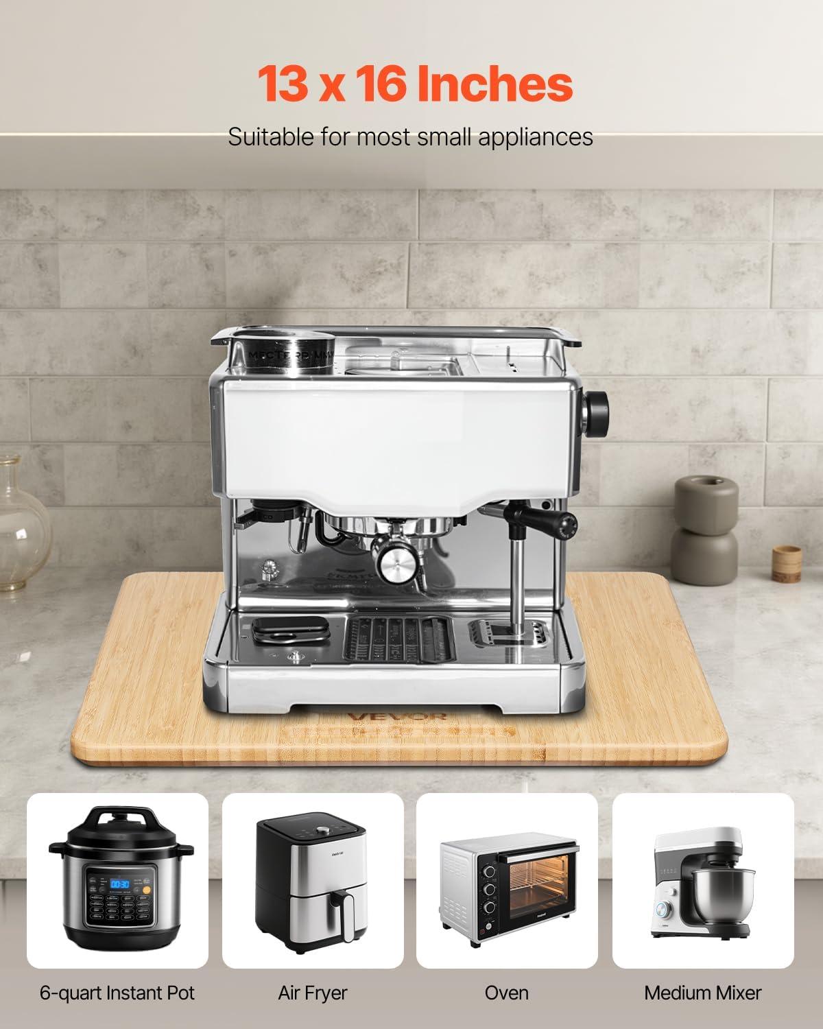 VEVOR Appliance Slider, Medium 14 x 9.5-inch, Rolling Sliding Tray with Rubber Wheels & Hollow Handle, Easy to Clean, Appliance Rolling Tray for Coffee Maker, Kitchen Countertop, Natural Wood(Wide – Large (13″D x 16″W))