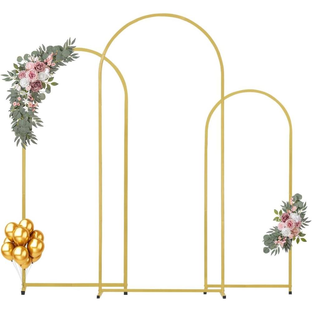 Elegant Design: This wedding arch backdrop stand includes 3 gold arch frames in sizes 6 x 2.6 ft, 5 x 2.2 and 4 x 1.7 ft, creating a romantic and elegant atmosphere for weddings while serving as a popular backdrop for guest photos.