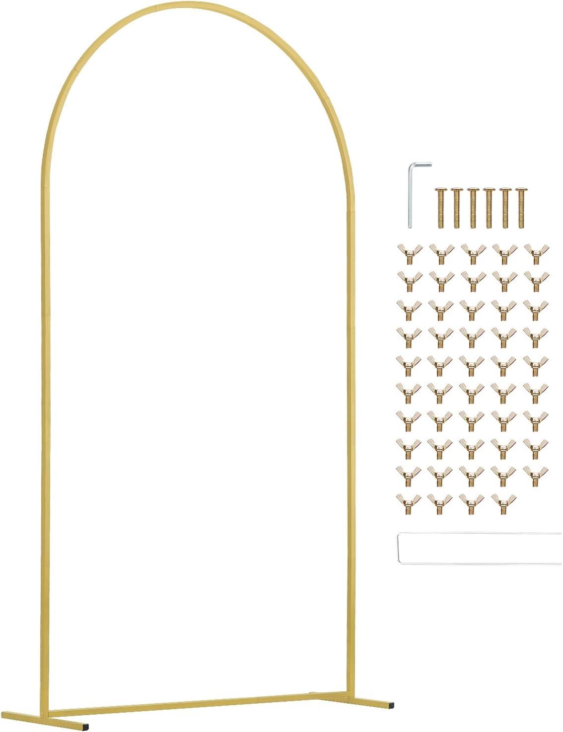 VEVOR Arch Backdrop Stand, 6Ft, 5Ft & 4Ft, Set of 3 Balloon Metal Arch Stand for Ceremony, Gold Wedding Arch Backdrop Stand, Fit for Birthday Party, Baby Shower, Graduations, Holiday(8ft 7.2ft 6.6ft)