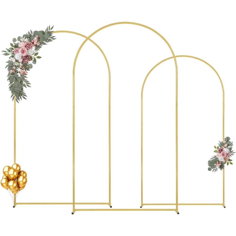 Elegant Design: This wedding arch backdrop stand includes 3 gold arch frames in sizes 6 x 2.6 ft, 5 x 2.2 and 4 x 1.7 ft, creating a romantic and elegant atmosphere for weddings while serving as a popular backdrop for guest photos.