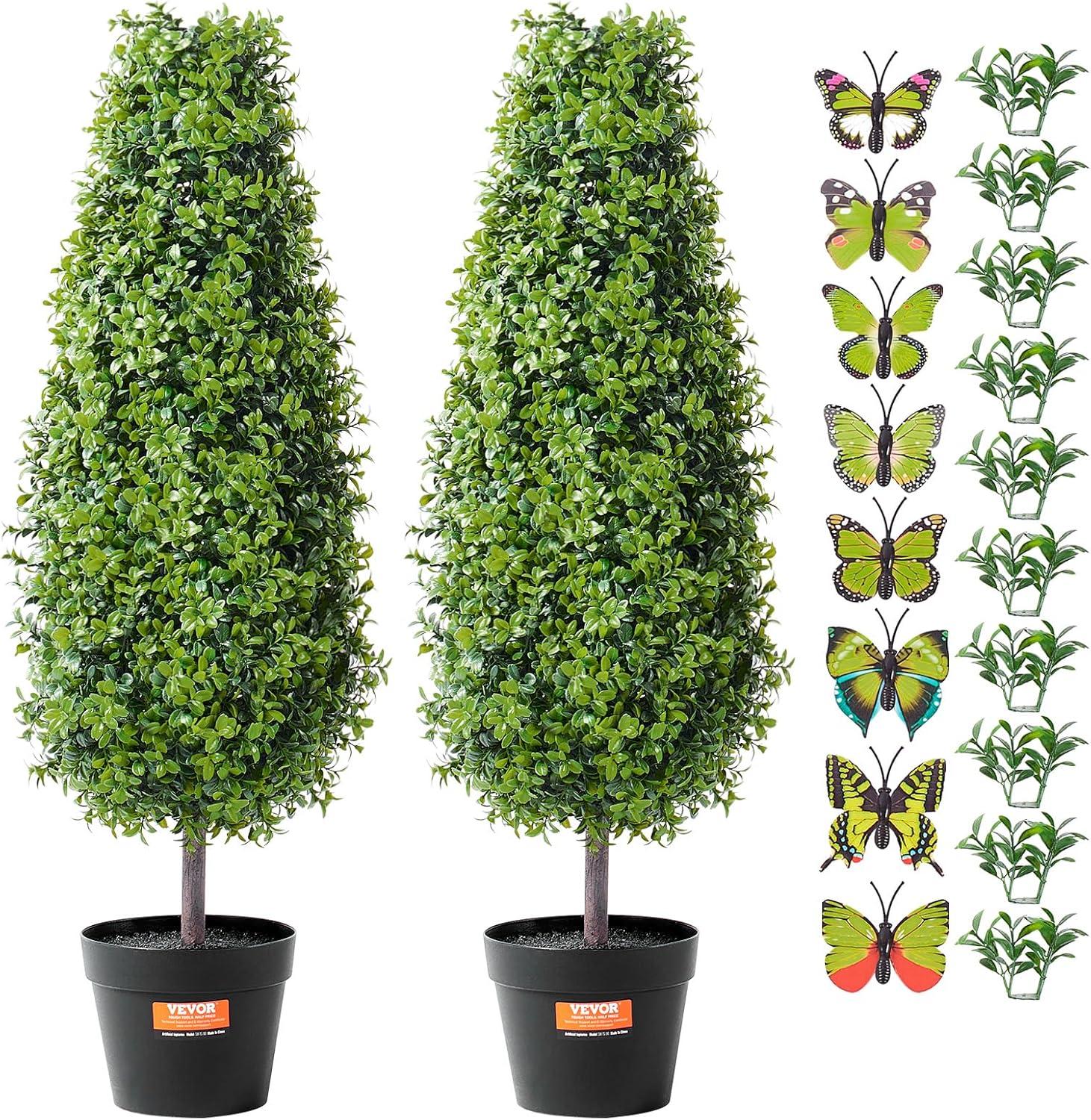 2 Pack 36” Boxwood: Includes two 36-inch artificial boxwood, each with a base pot for easy placement without replanting. Suitable for both indoor and outdoor use, perfect for decorating interiors, patios, doorways, and entrances.