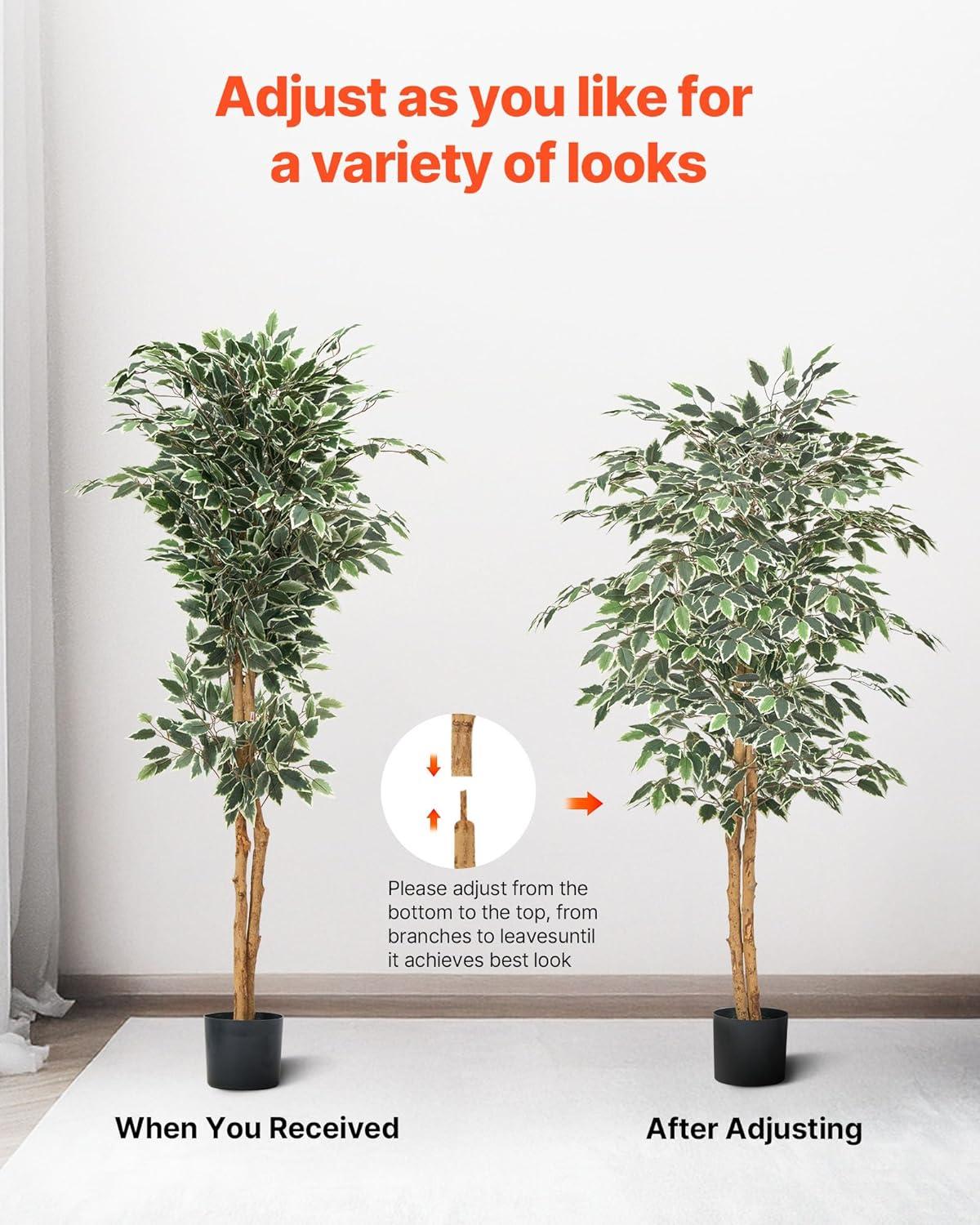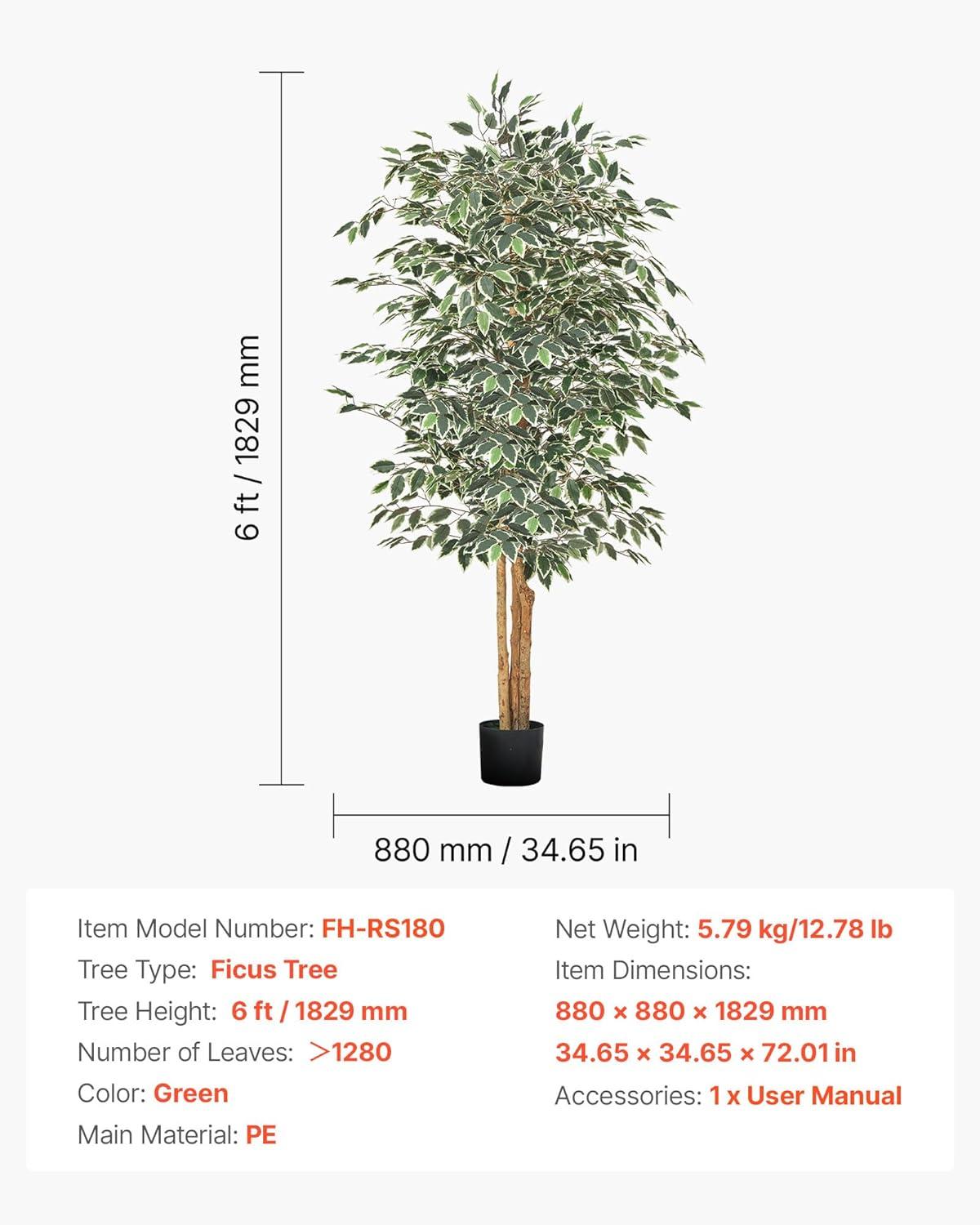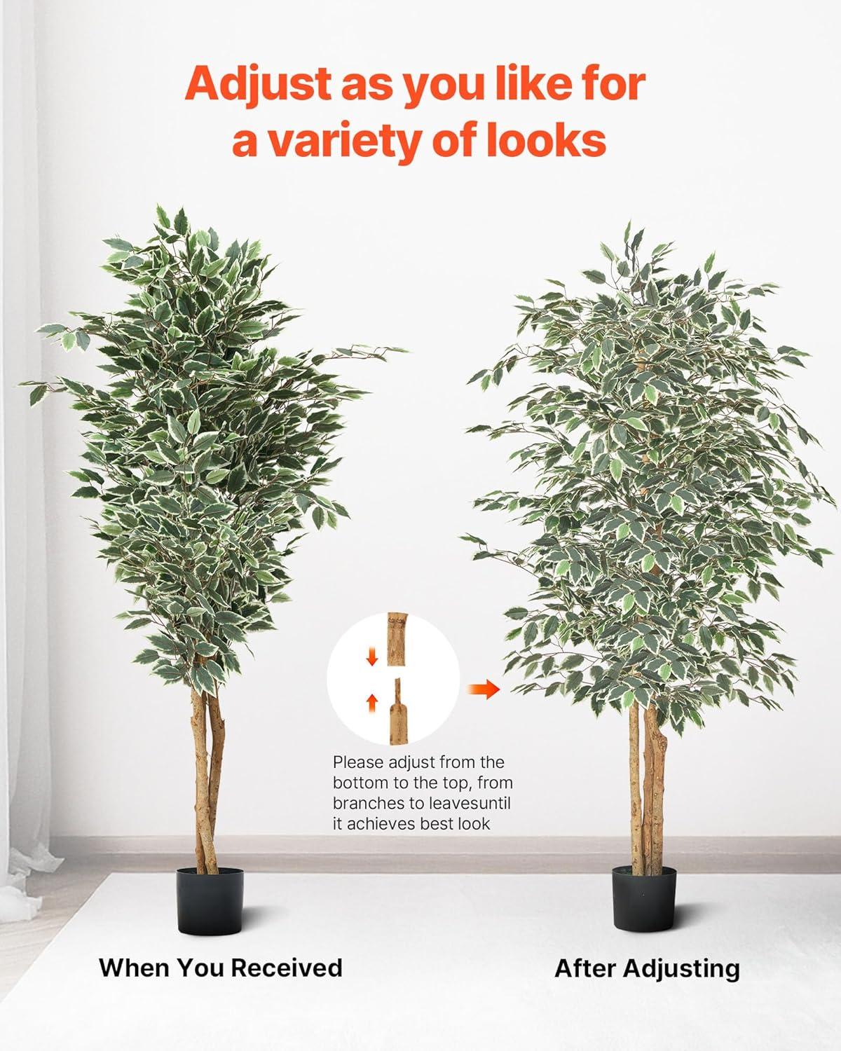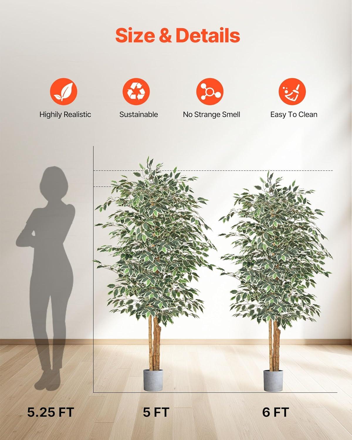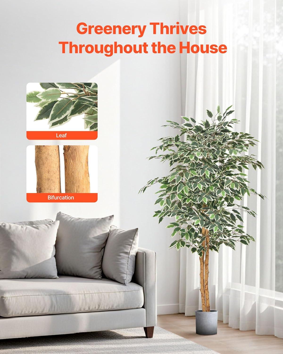 VEVOR Artificial Olive Tree, 5 FT Tall Faux Plant, Secure PE Material & Anti-Tip Tilt Protection Low-Maintenance Plant, Lifelike Green Fake Potted Tree for Home Office Warehouse Decor Indoor Outdoor(Artificial Ficus Tree)