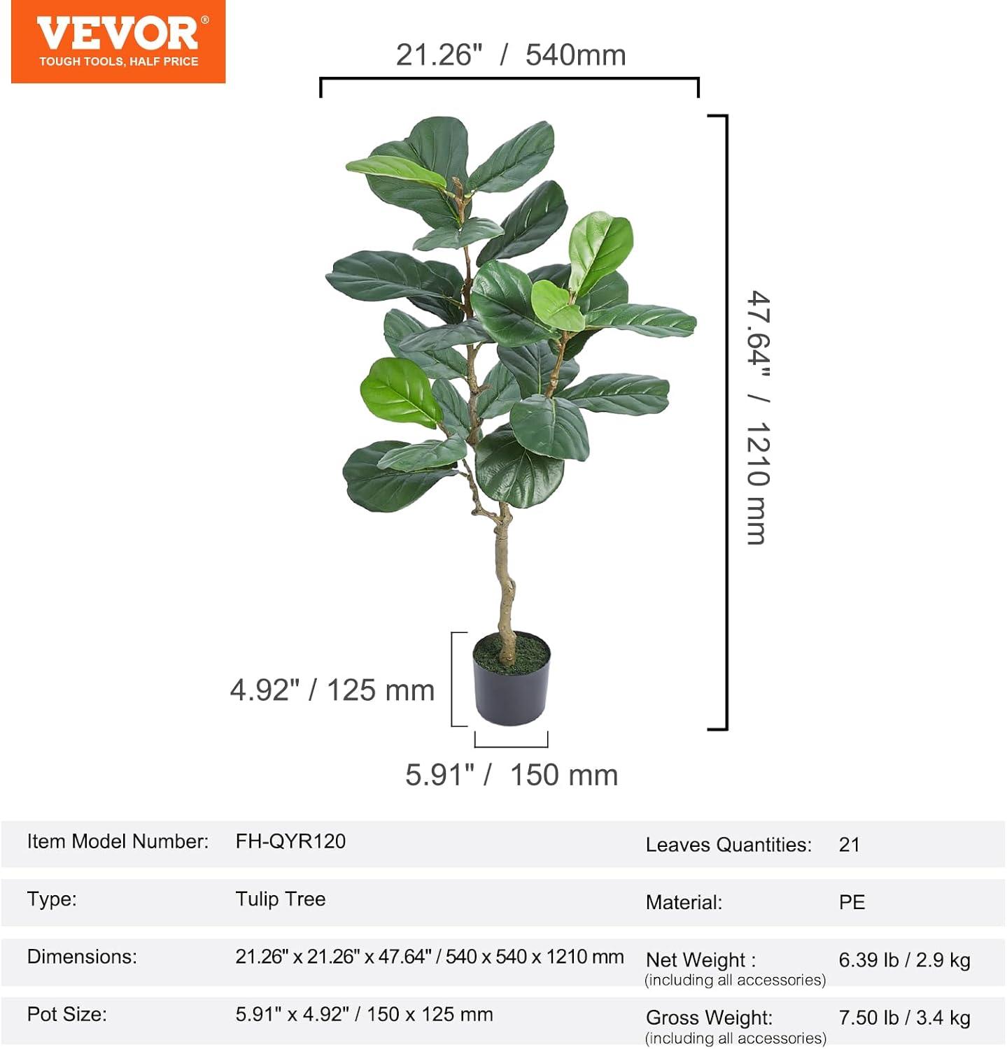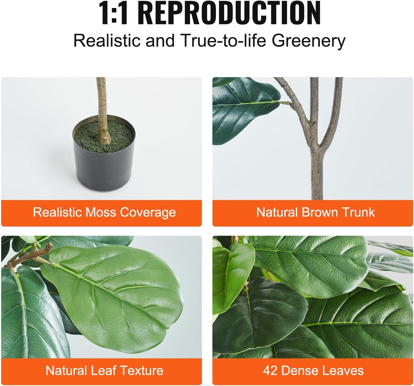 VEVOR Artificial Olive Tree, 5 FT Tall Faux Plant, Secure PE Material & Anti-Tip Tilt Protection Low-Maintenance Plant, Lifelike Green Fake Potted Tree for Home Office Warehouse Decor Indoor Outdoor(Fiddle Leaf Fig Tree)