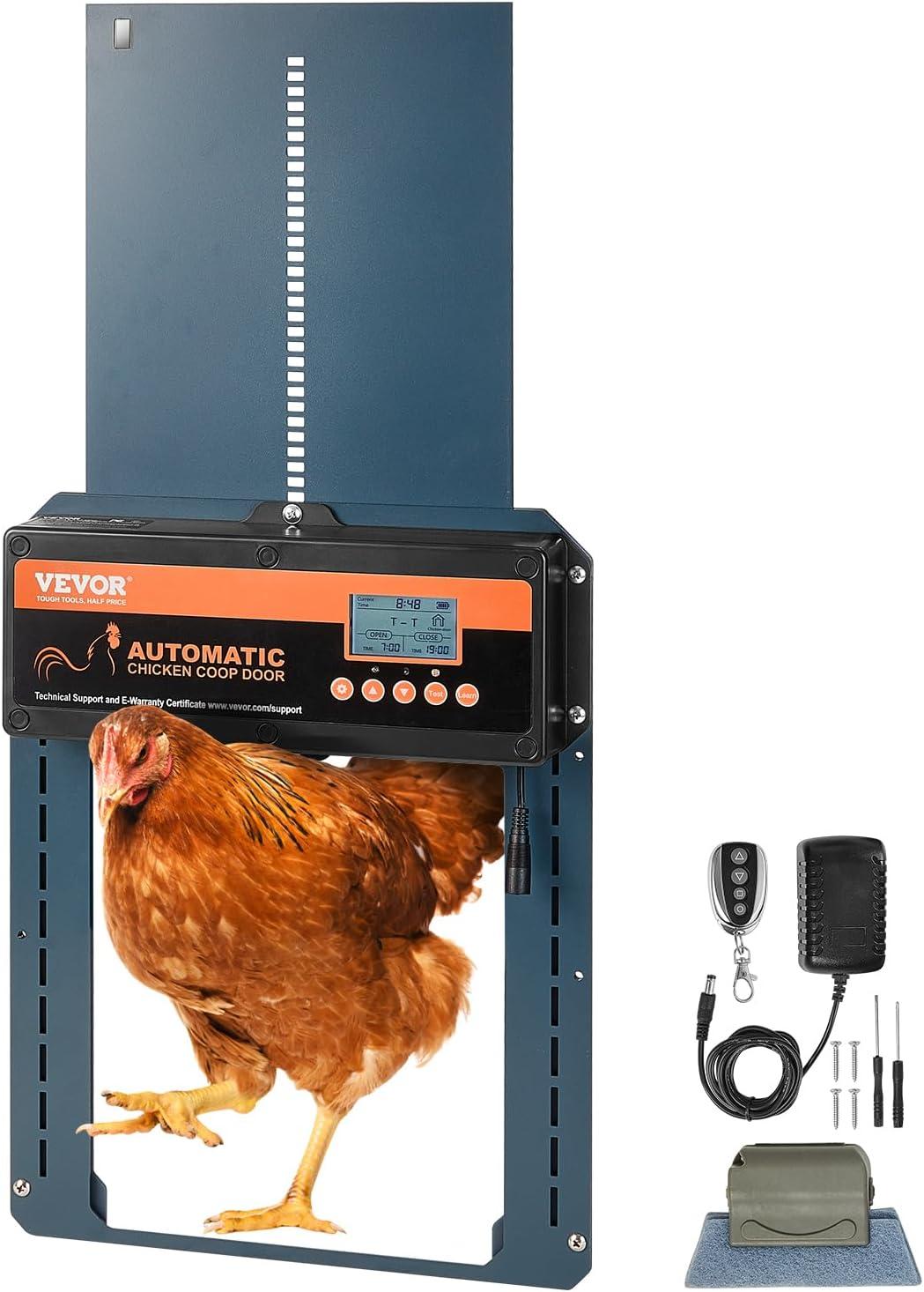 Easy to Use: With four adjustable modes, you can set a timer, use the light sensor, switch to manual mode, or operate our automatic chicken coop door remotely with the included remote control. Customize the door opening and closing to suit your specific needs.