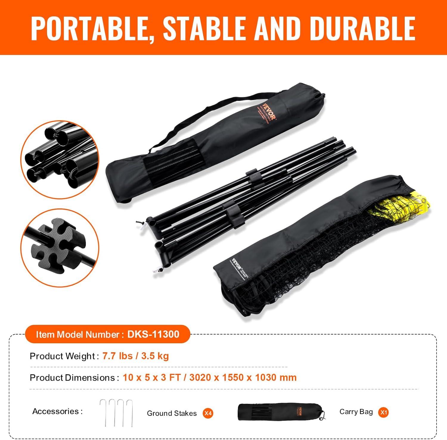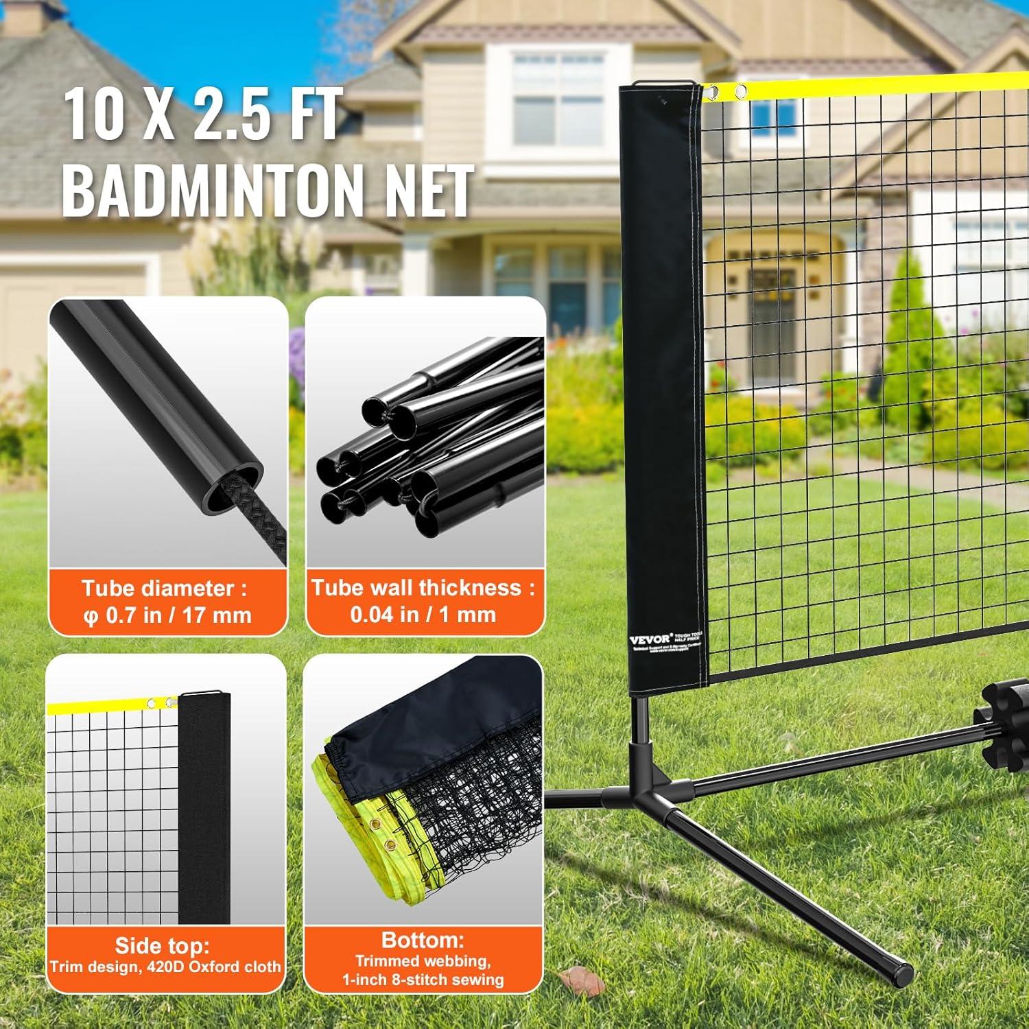VEVOR Badminton Net, Height Adjustable Volleyball Net, Wide Foldable Pickleball Net, Portable Easy Setup Tennis Net Set with Poles, Stand and Carry Bag, for Kids Backyard Game Indoor Outdoor Use(10ft)