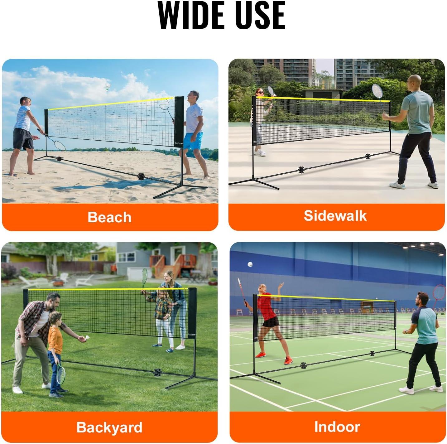 VEVOR Badminton Net, Height Adjustable Volleyball Net, Wide Foldable Pickleball Net, Portable Easy Setup Tennis Net Set with Poles, Stand and Carry Bag, for Kids Backyard Game Indoor Outdoor Use(14ft)