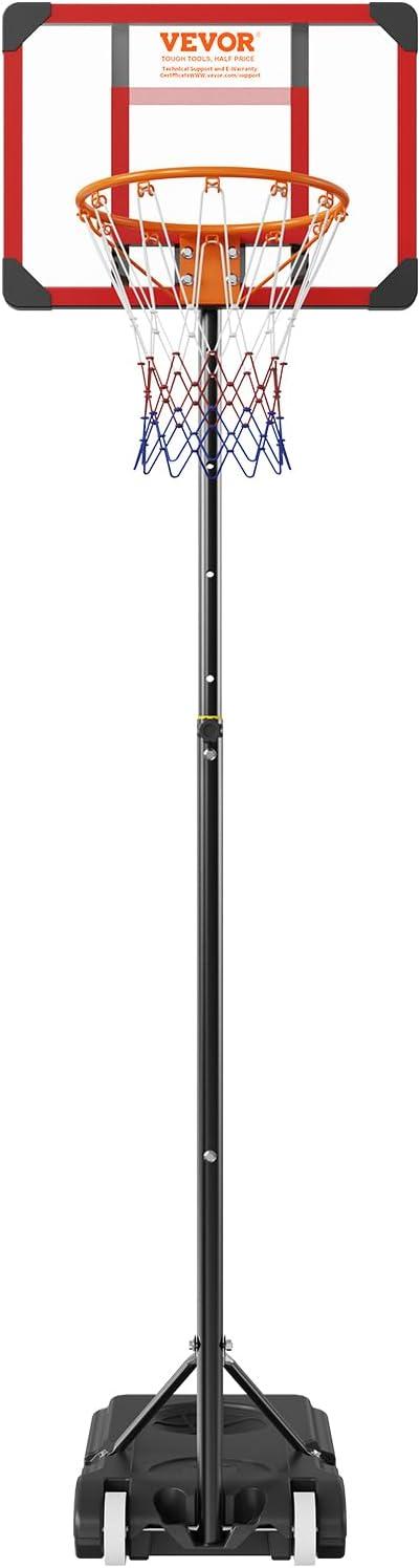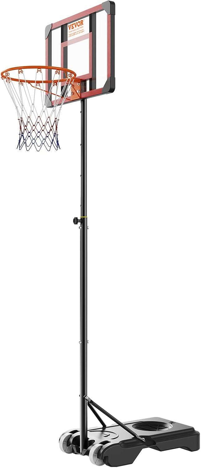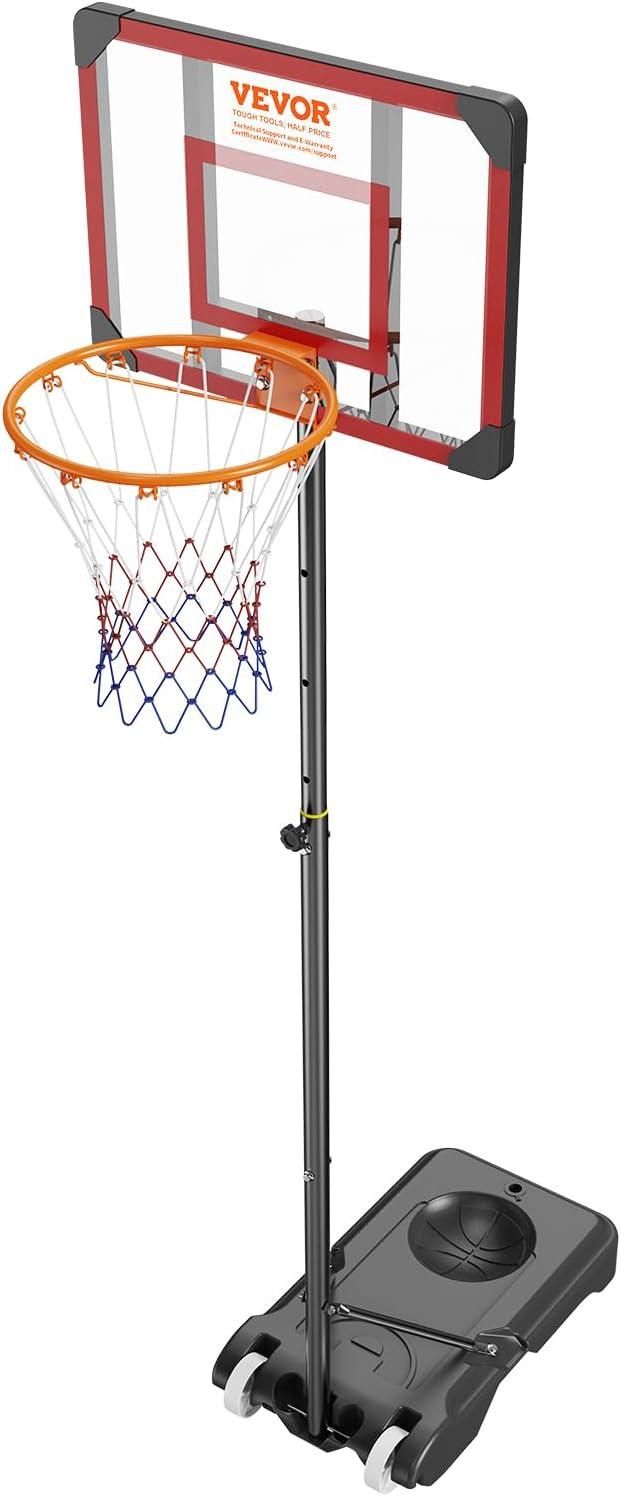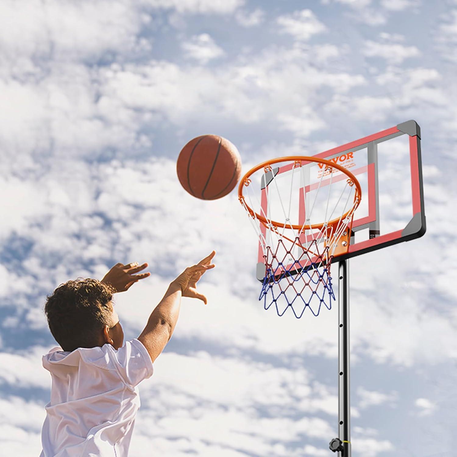 VEVOR Basketball Hoop/Rim, Adjustable Height Portable Backboard Court, Basketball Goal, Mobile Stand with Wheels Weighted Base, Youth&Adults, Outdoor/Indoor(28in Red Backboard)