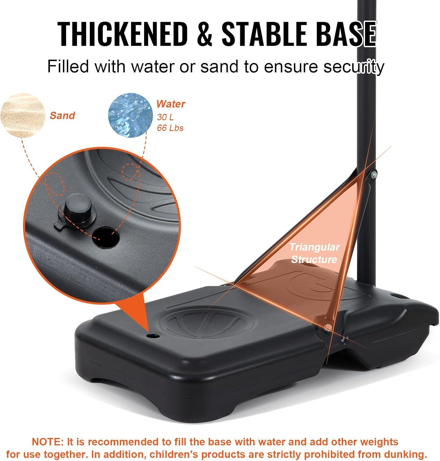 VEVOR Basketball Hoop, Adjustable Height Portable Backboard Hoop Court, Basketball Hoops Goal, Mobile Stand with Wheels Weighted Base, Youth&Adults, Basketball Hoop Outdoor / Indoor