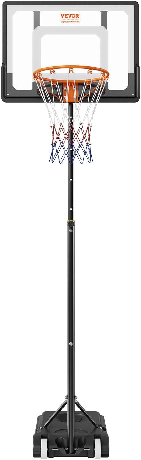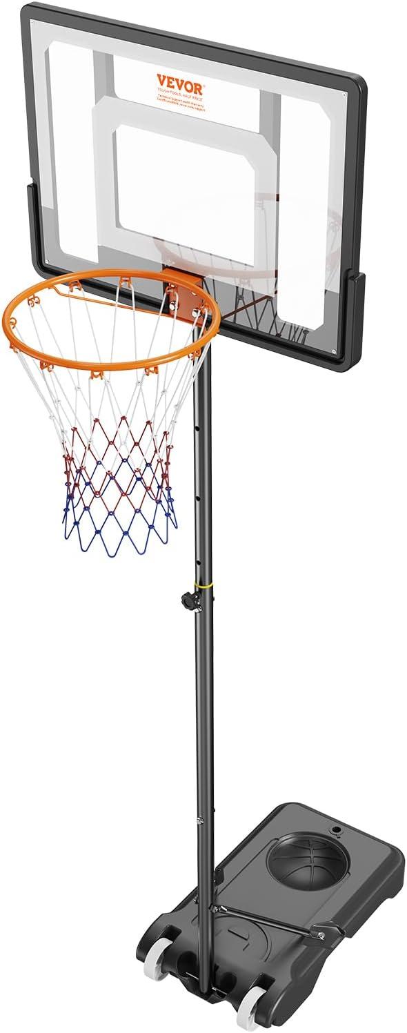 VEVOR Basketball Hoop, Adjustable Height Portable Backboard Hoop Court, Basketball Hoops Goal, Mobile Stand with Wheels Weighted Base, Youth&Adults, Basketball Hoop Outdoor / Indoor