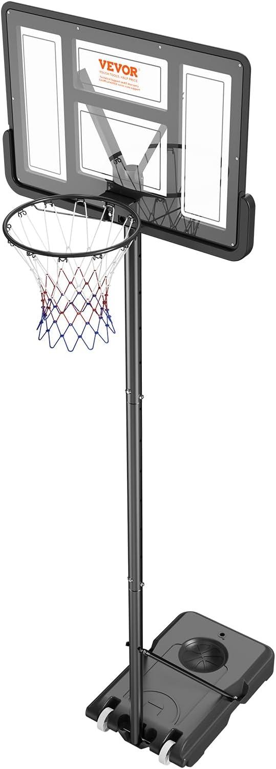 VEVOR Basketball Hoop/Rim, Adjustable Height Portable Backboard Court, Basketball Goal, Mobile Stand with Wheels Weighted Base, Youth&Adults, Outdoor/Indoor(44in Black Backboard)