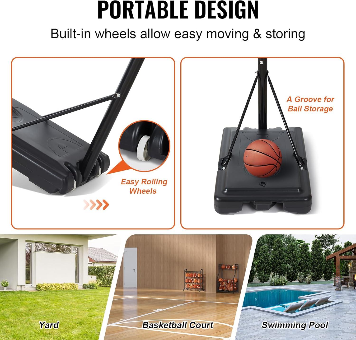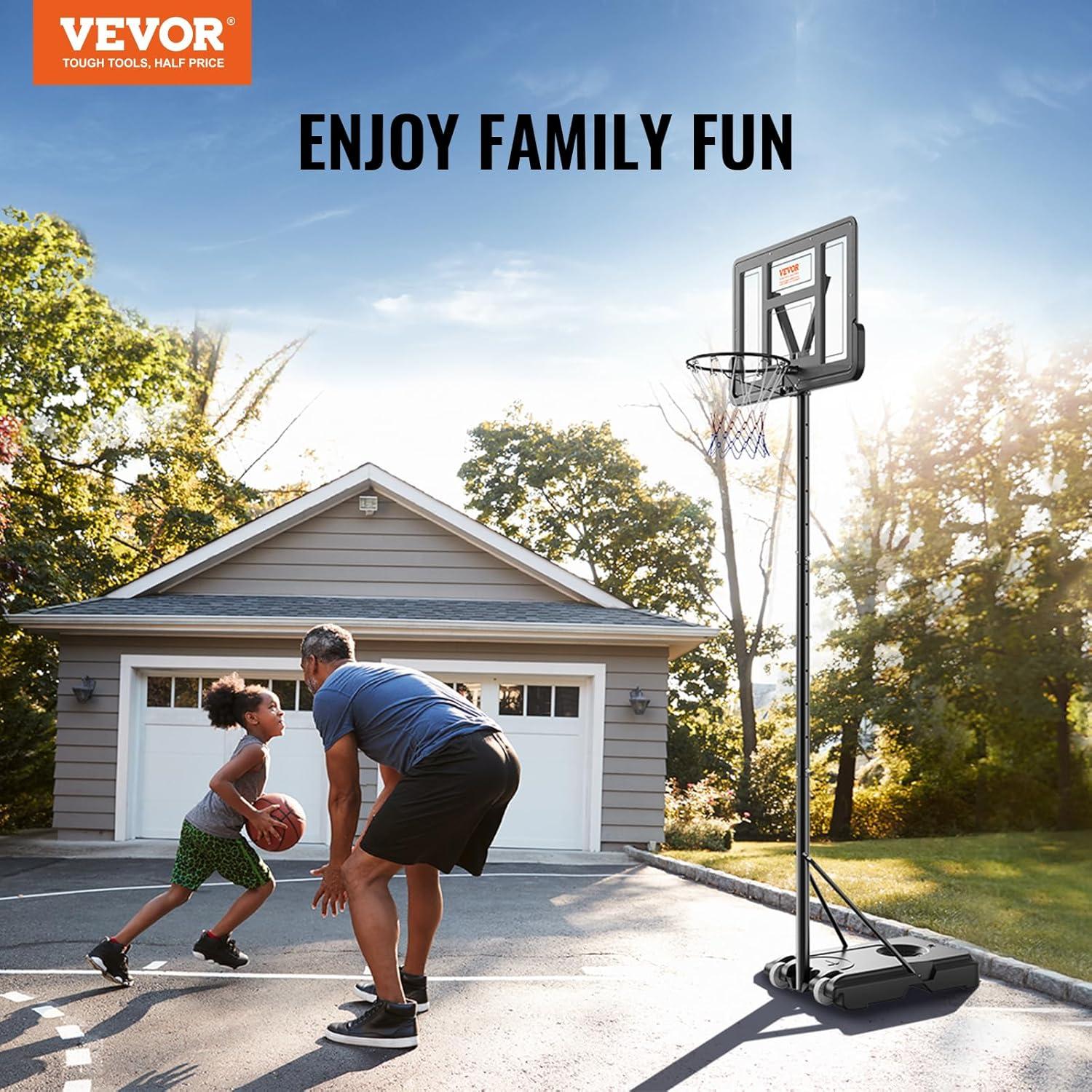 VEVOR Basketball Hoop, Adjustable Height Portable Backboard Hoop Court, Basketball Hoops Goal, Mobile Stand with Wheels Weighted Base, Youth&Adults, Basketball Hoop Outdoor / Indoor
