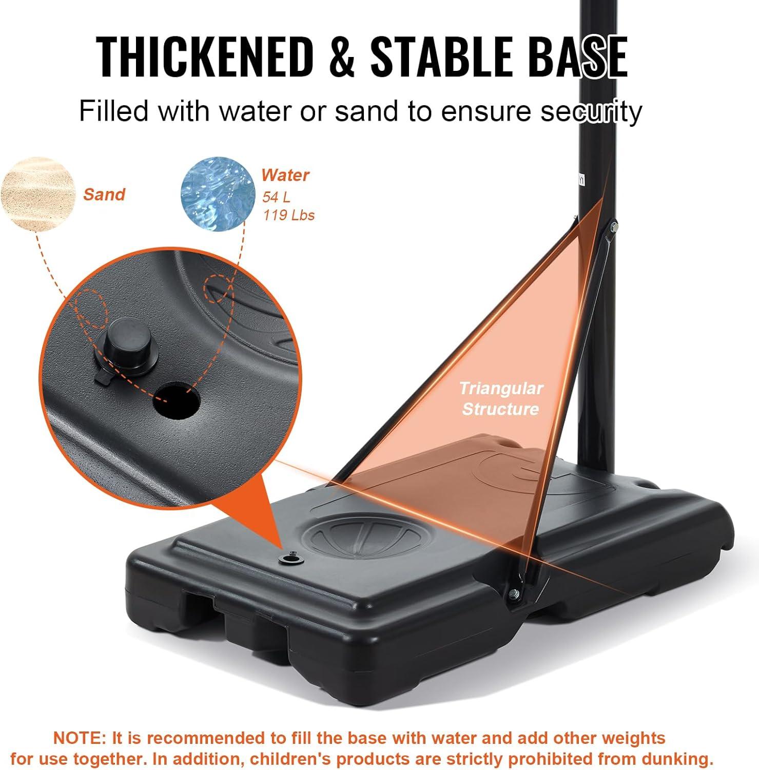 imageVEVOR Basketball HoopRim Adjustable Height Portable Backboard Court Basketball Goal Mobile Stand with Wheels Weighted Base YouthampampAdults OutdoorIndoor44in Black Backboard
