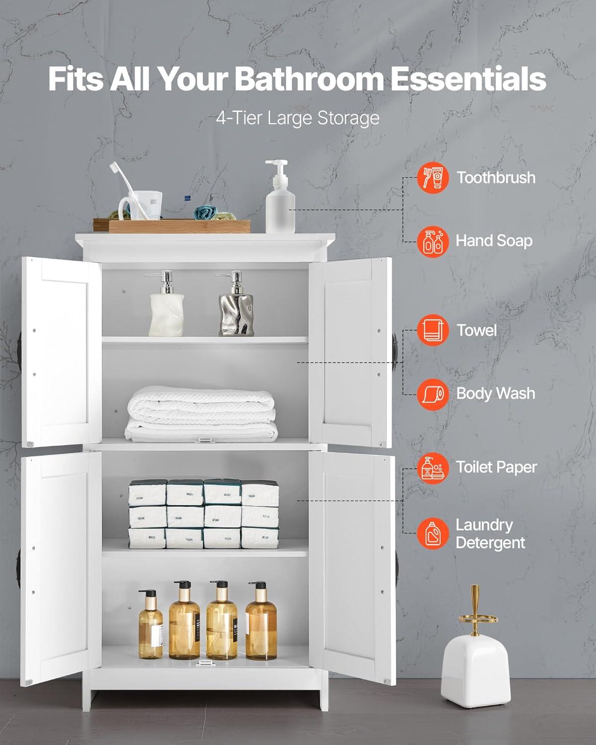 Versatile Home Organizer: The sleek white finish and generous storage make this bathroom cabinet a go-to for any space. Use it as an entryway organizer, display cabinet, bookshelf, or kitchen storage unit