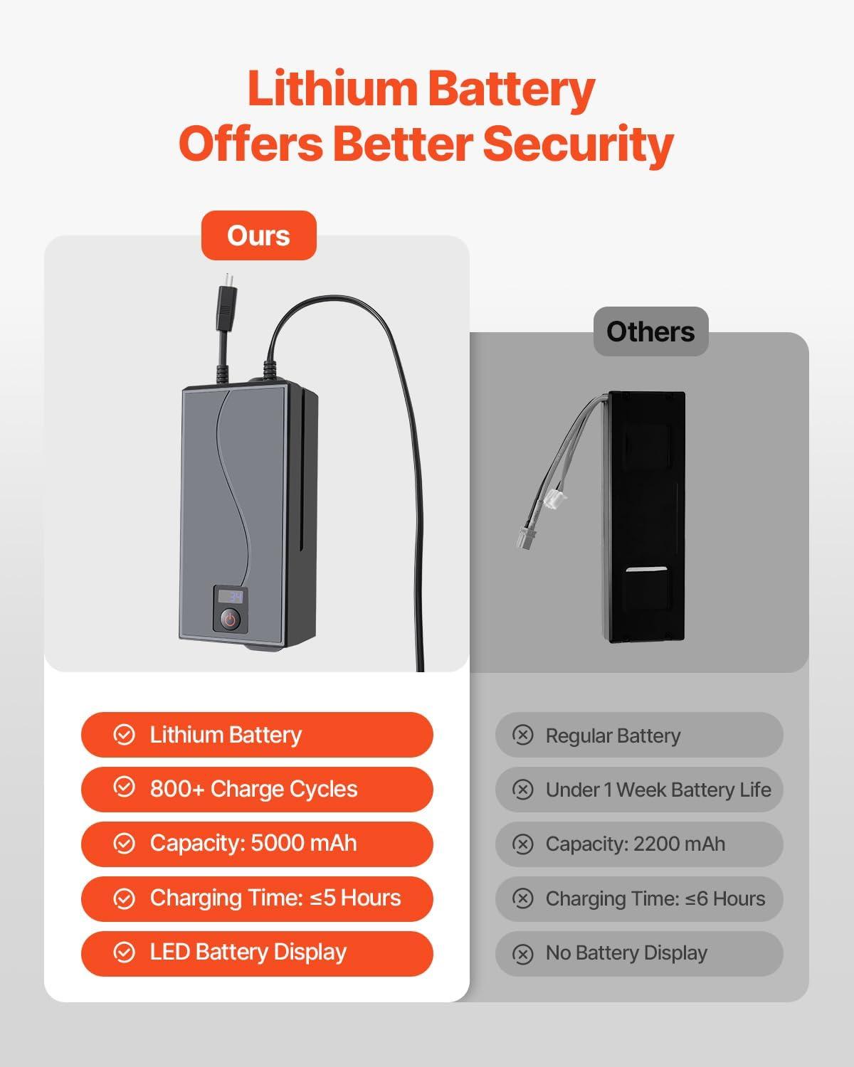 imageVEVOR Battery Pack for Reclining Furniture 5000 mAh Rechargeable Recliner Battery Pack with Universal 2Pin Connection and LED Display Screen for Electric Recliner Sofa Couch and Lift Chair5000mAh battery