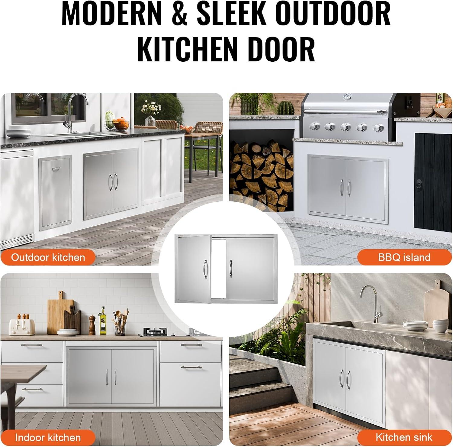 VEVOR BBQ Access Door, 24W x 24H Inch Double Outdoor Kitchen, Stainless Steel Flush Mount Door, Double Wall Vertical with Handles and Hooks, for BBQ Island, Grilling Station, Outside Cabinet(35W x 24H)