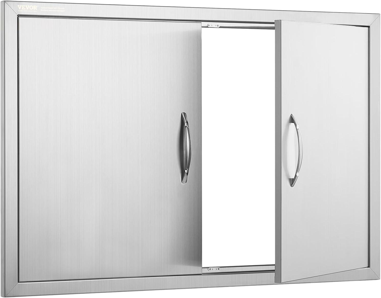 VEVOR BBQ Access Door, 24W x 24H Inch Double Outdoor Kitchen, Stainless Steel Flush Mount Door, Double Wall Vertical with Handles and Hooks, for BBQ Island, Grilling Station, Outside Cabinet(36W x 24H)