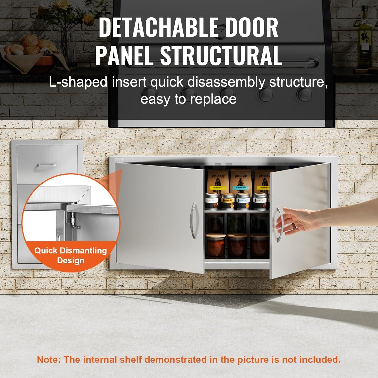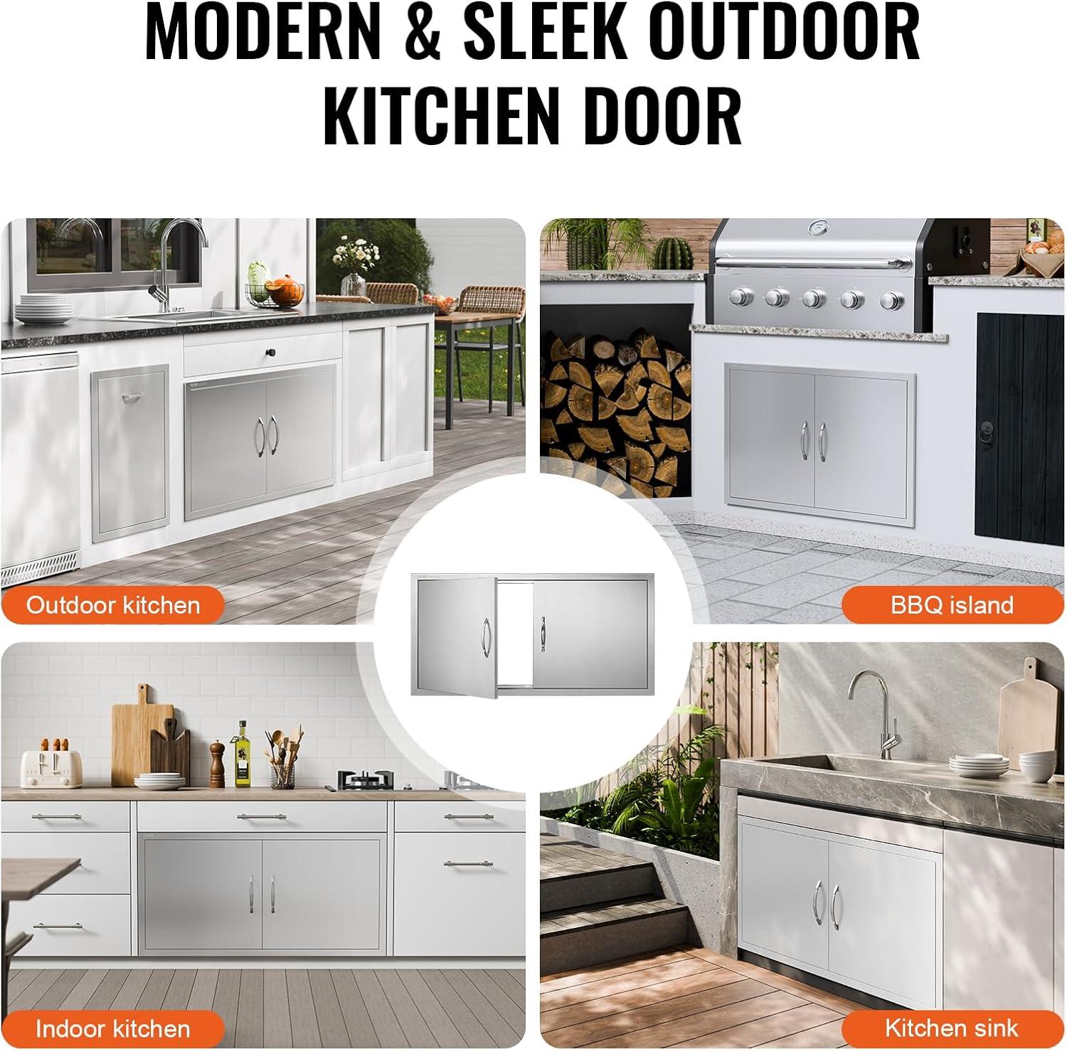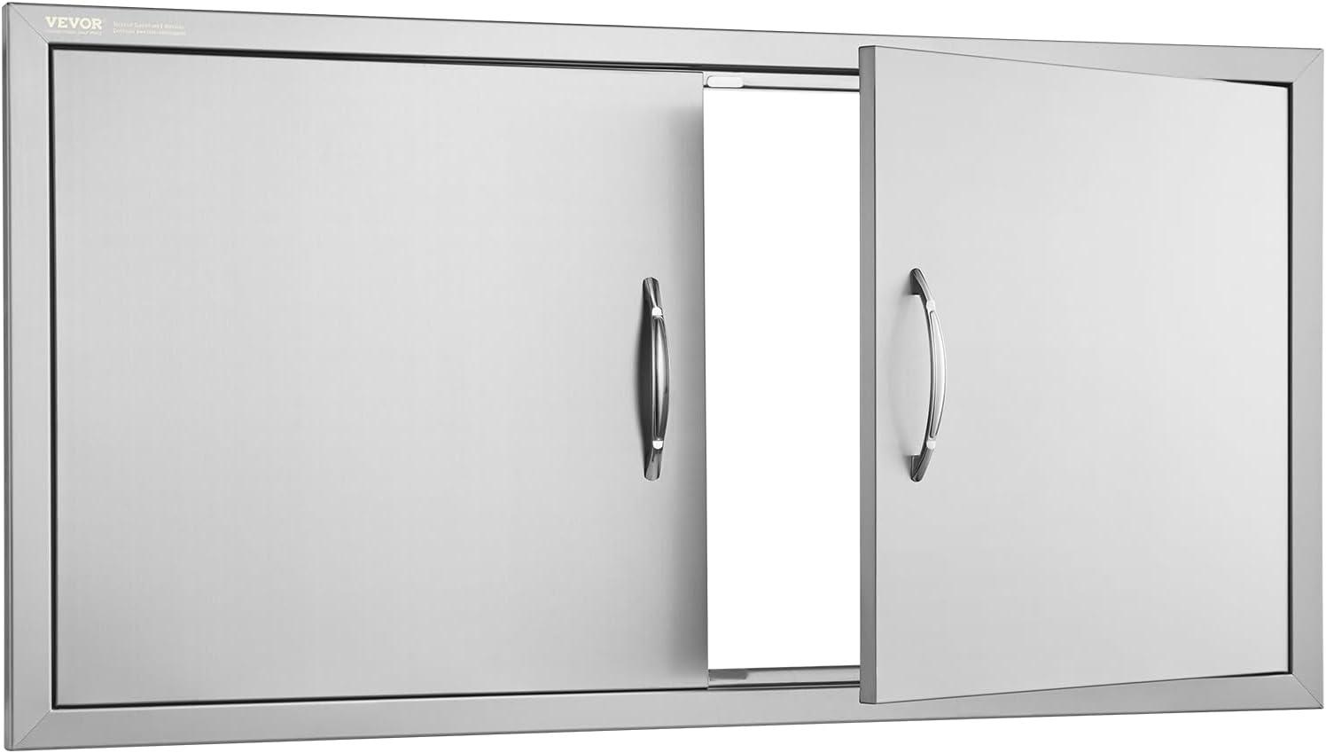 VEVOR BBQ Access Door, 24W x 24H Inch Double Outdoor Kitchen, Stainless Steel Flush Mount Door, Double Wall Vertical with Handles and Hooks, for BBQ Island, Grilling Station, Outside Cabinet(39W x 26H)