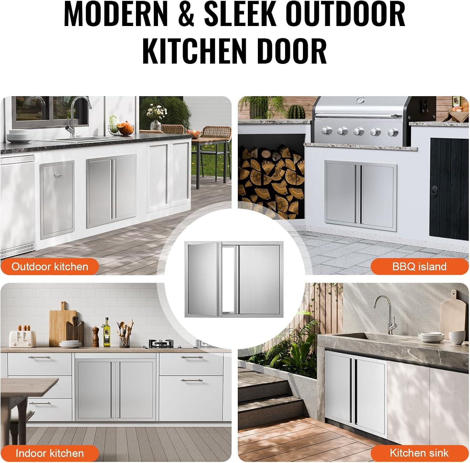 VEVOR BBQ Double Outdoor Kitchen Door, 26W x 24H Inch, Stainless Steel Flush Mount, Vertical Wall Door with Recessed Handles, for Grilling Station(Modern)