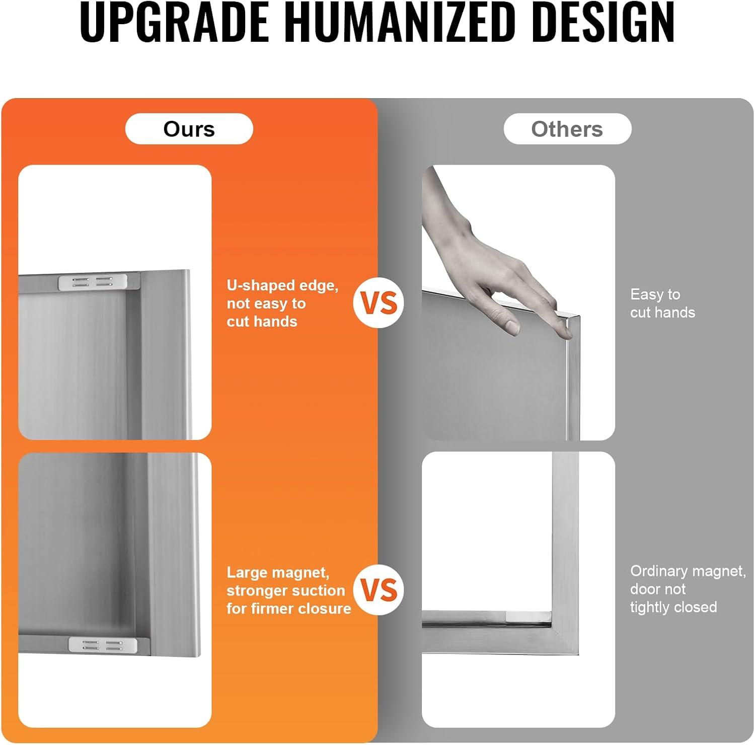 imageVEVOR BBQ Double Outdoor Kitchen Door 26W x 24H Inch Stainless Steel Flush Mount Vertical Wall Door with Recessed Handles for Grilling StationModern