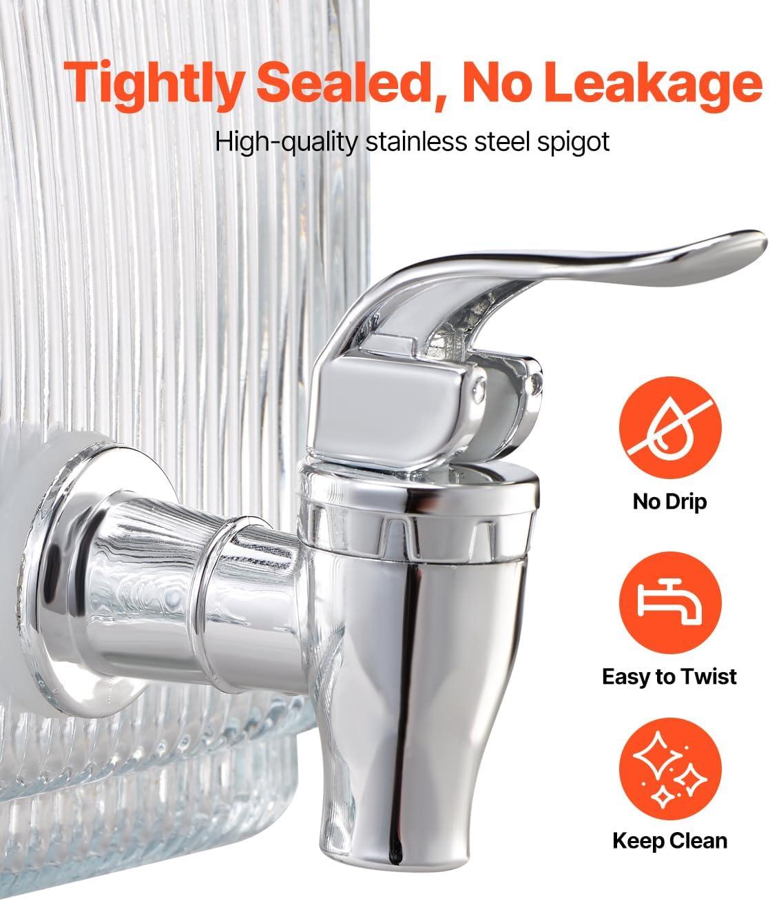 No Drip Spigot: Equipped with a tightly sealed spigot, the drink dispenser is convenient for dispensing without leakage, so you won't have to worry about cleaning spilled drinks. It helps keep your drink station clean and aesthetic