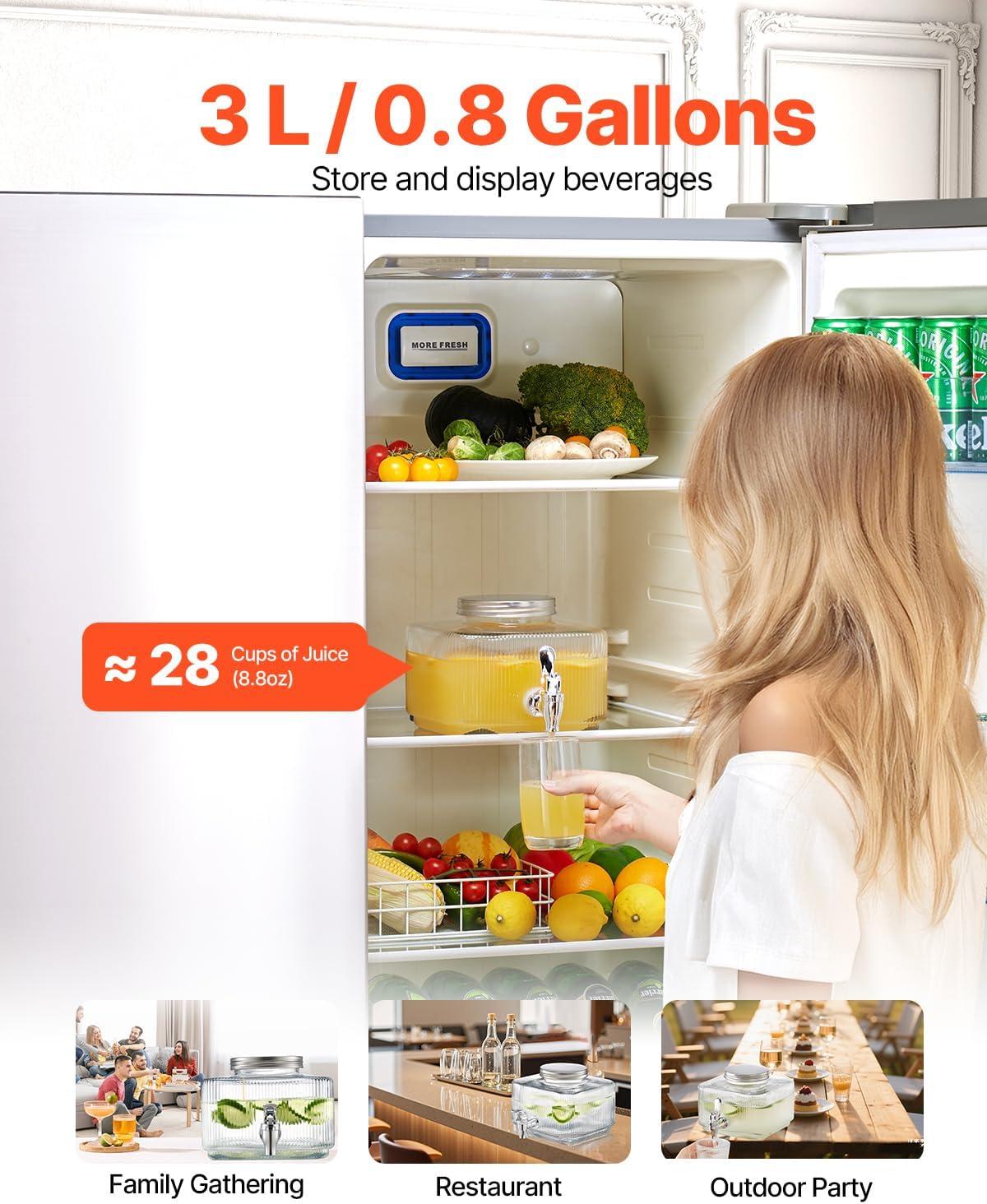 VEVOR Beverage Dispenser, 0.8 Gallon Drink Dispensers for Parties, Glass Juice Dispenser with No-Drip Spigot and Lid, Iced Tea Lemonade Juice Water Dispensers for Restaurants, Hotels, Parties