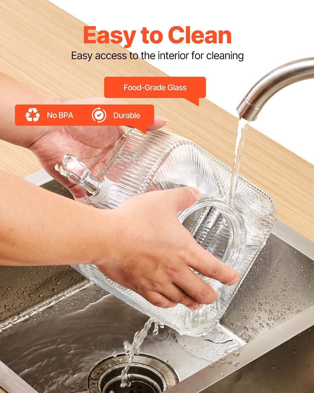 Easy to Clean: Made from food-grade glass, the juice dispenser for parties is stain-resistant, durable, and dishwasher-safe. The removable lid and wide opening make cleaning the interior effortless