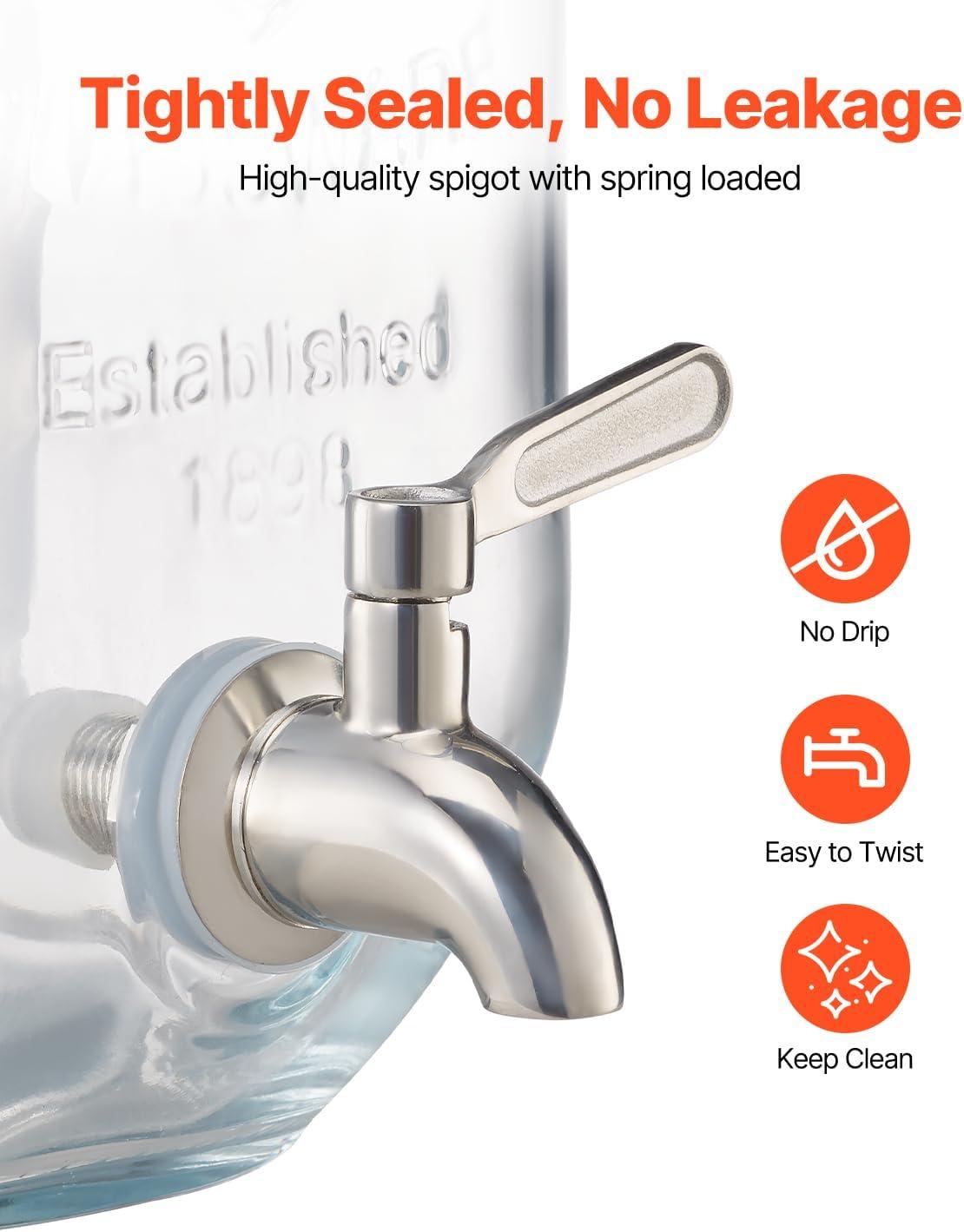 No Drip Spigot: Equipped with a tightly sealed stainless steel spigot, the drink dispenser is convenient for dispensing without leakage, so you won't have to worry about cleaning spilled drinks. It helps keep your drink station clean and aesthetic