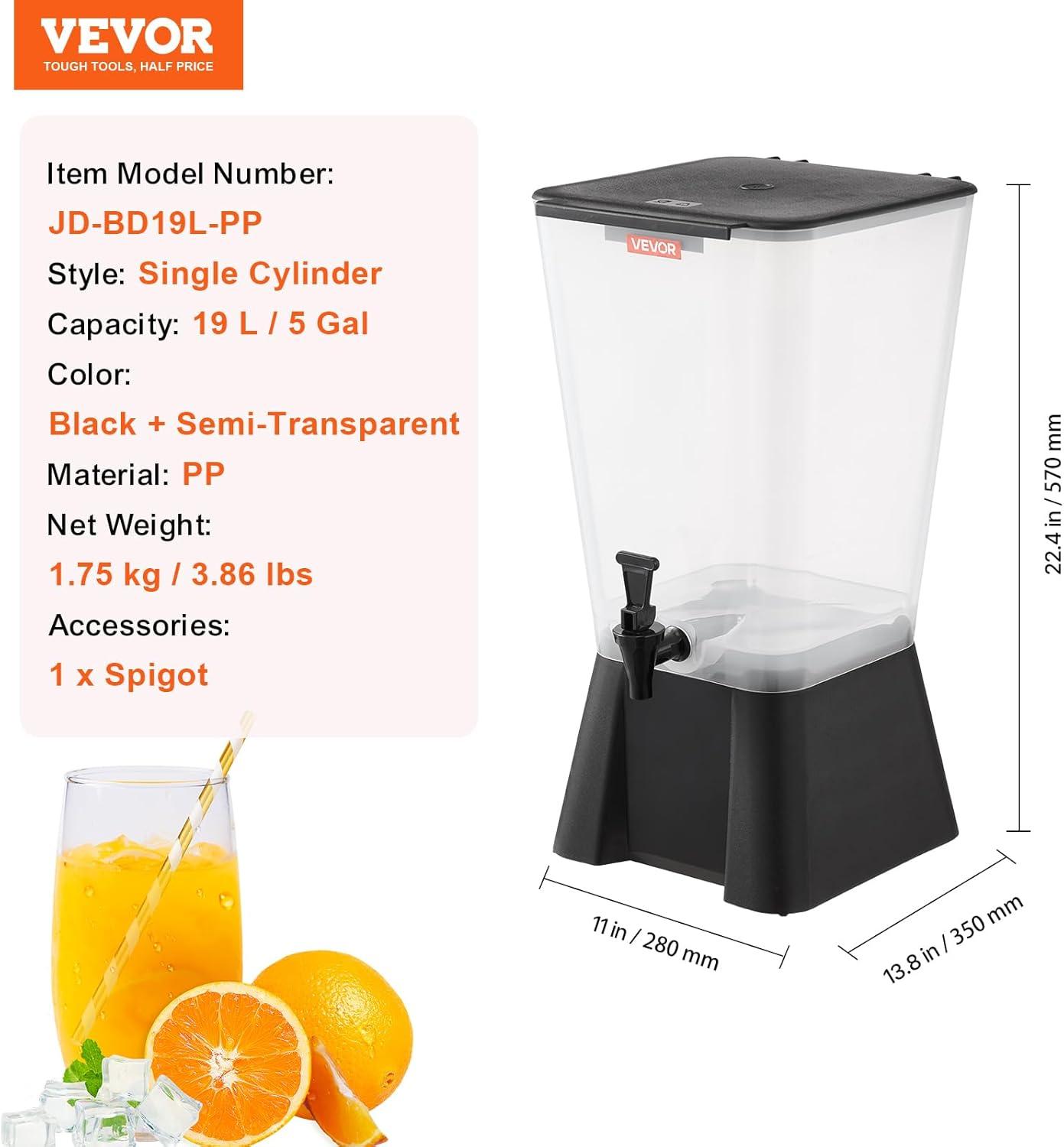 VEVOR Beverage Dispenser, 3 Gallon x 2 Drink Dispensers for Parties, Plastic Juice Dispenser with Stand Spigot Lid, Iced Tea Lemonade Juice Water Dispenser, for Restaurants, Hotels, Parties(5Gal 1Pack)