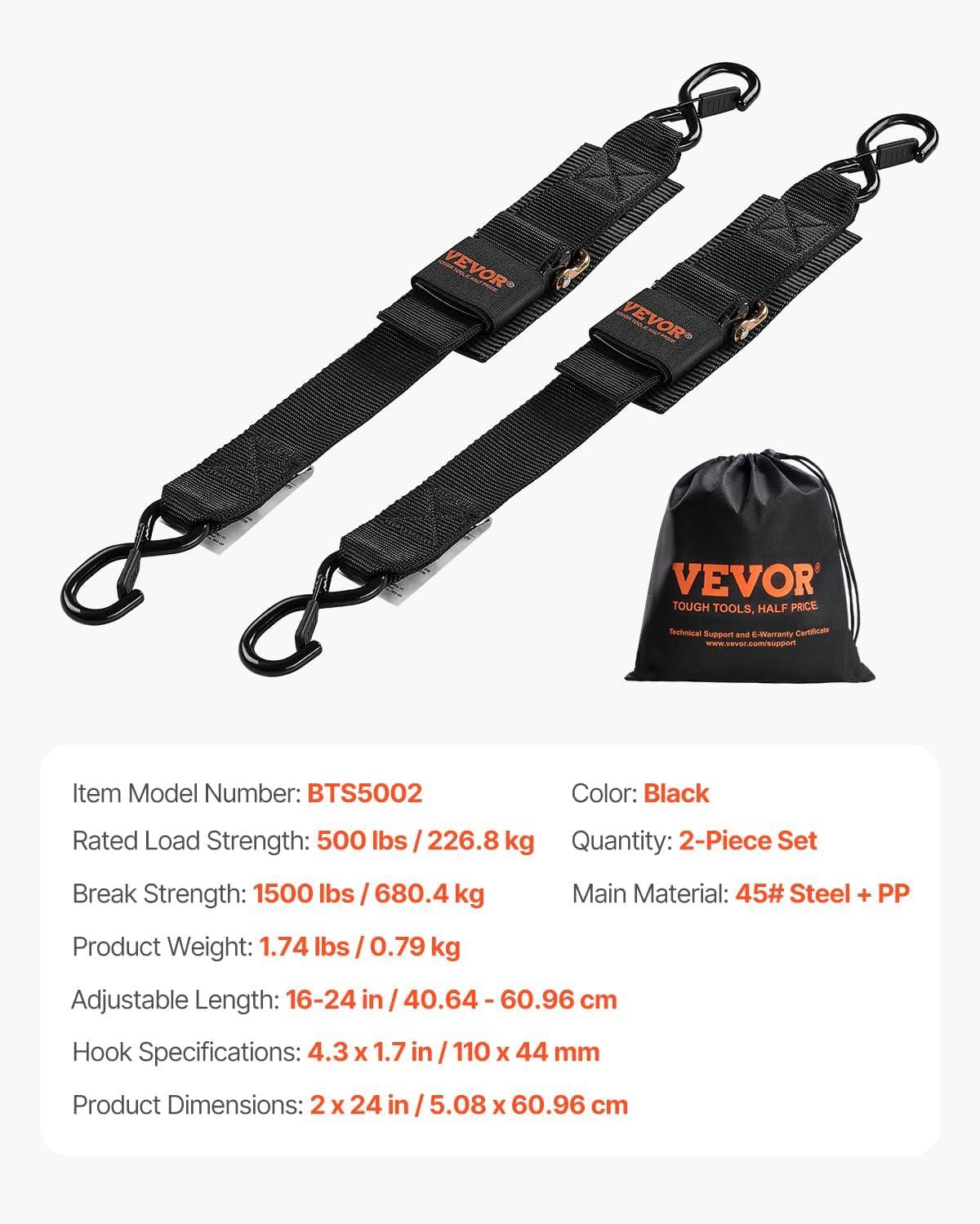 VEVOR Boat Trailer Transom Straps (2PK), 2’’ x 24’’ Adjustable Boat Straps 1,500lb Break Strength with Security Lock S Hooks and Boat Pads, Transom Tiedowns for Trailer, Boat or Kayak Secure
