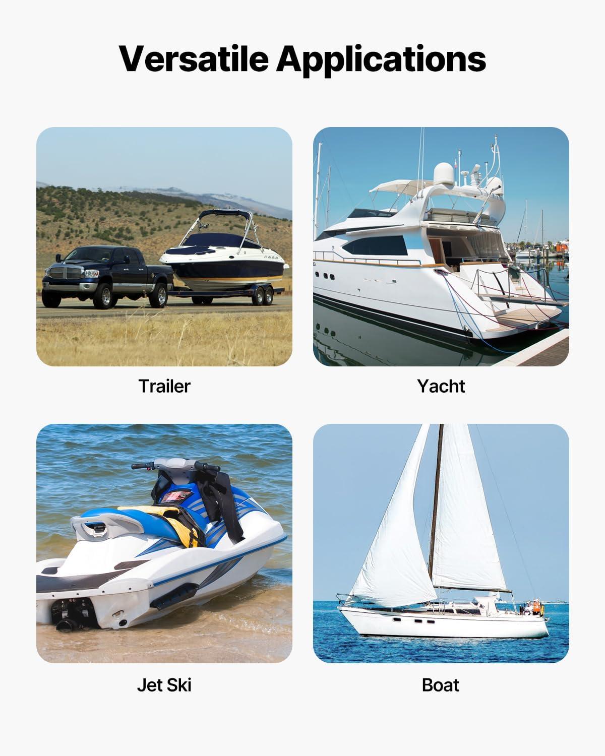 Durable and Reliable: Made with thickened PP material, these boat trailer straps are wear-resistant, corrosion-resistant, and weather-resistant, maintaining excellent performance even after extended use and friction. Both ends feature PVC-coated S-hooks, which are corrosion-resistant, strong, and unbreakable, with a security locking clasp to avoid unhooking risks.