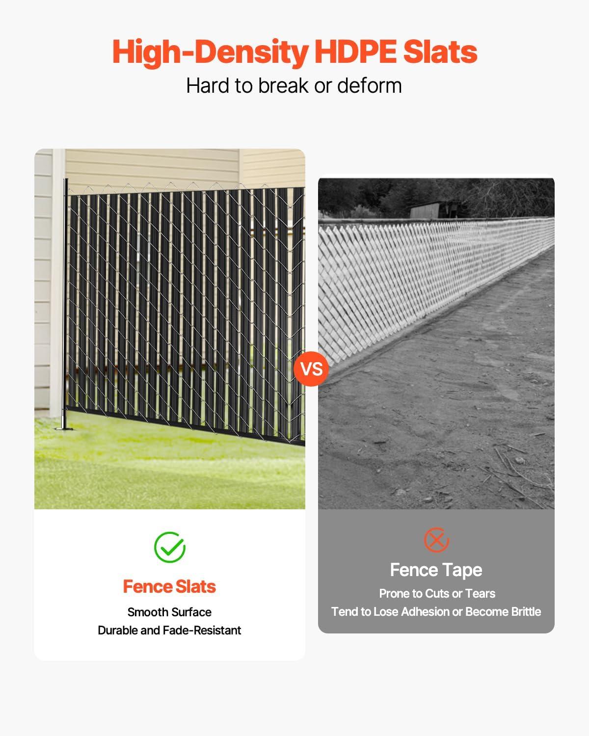 VEVOR Bottom Locking Privacy Slats, Single-Wall Vertical Bottom-Locking Slats for Chain-Link Fence, High-Density HDPE Chain Link Slats Ideally Fit 4' High Fence for Garden, Farm, Sports Field(Green)(Black)