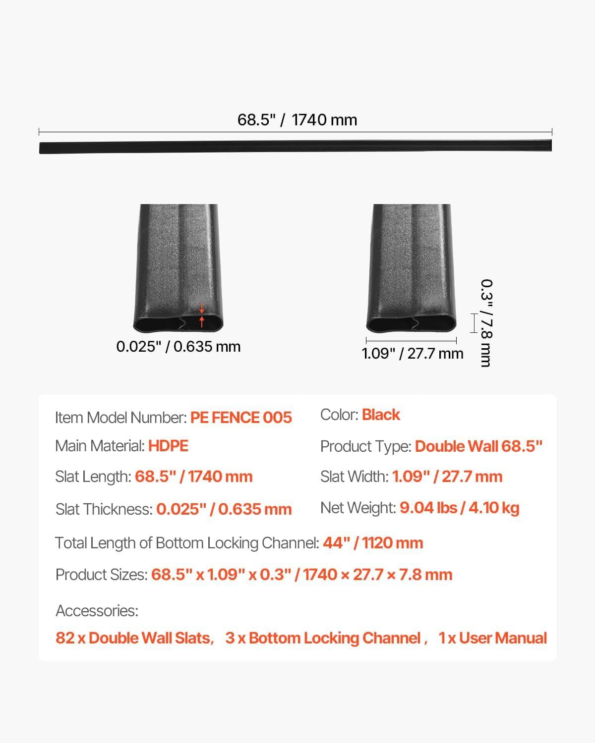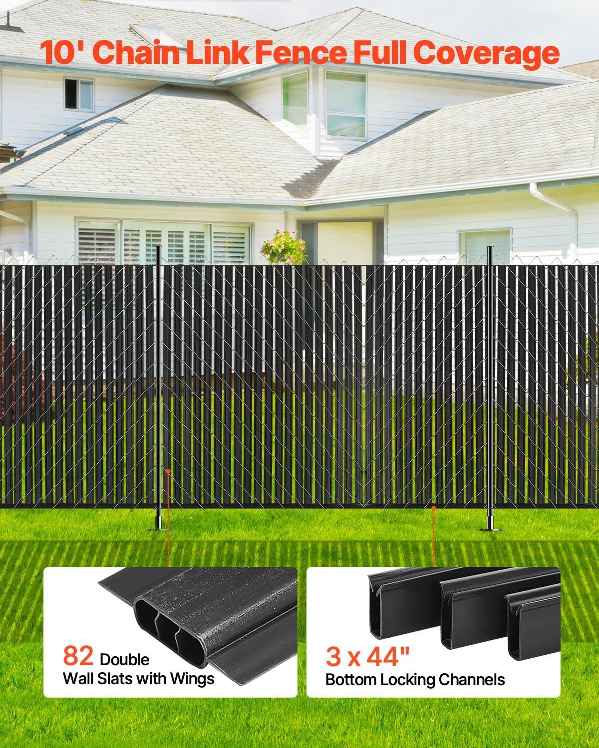 VEVOR Bottom Locking Privacy Slats, Single-Wall Vertical Bottom-Locking Slats for Chain-Link Fence, High-Density HDPE Chain Link Slats Ideally Fit 4′ High Fence for Garden, Farm, Sports Field(Green)(Black)