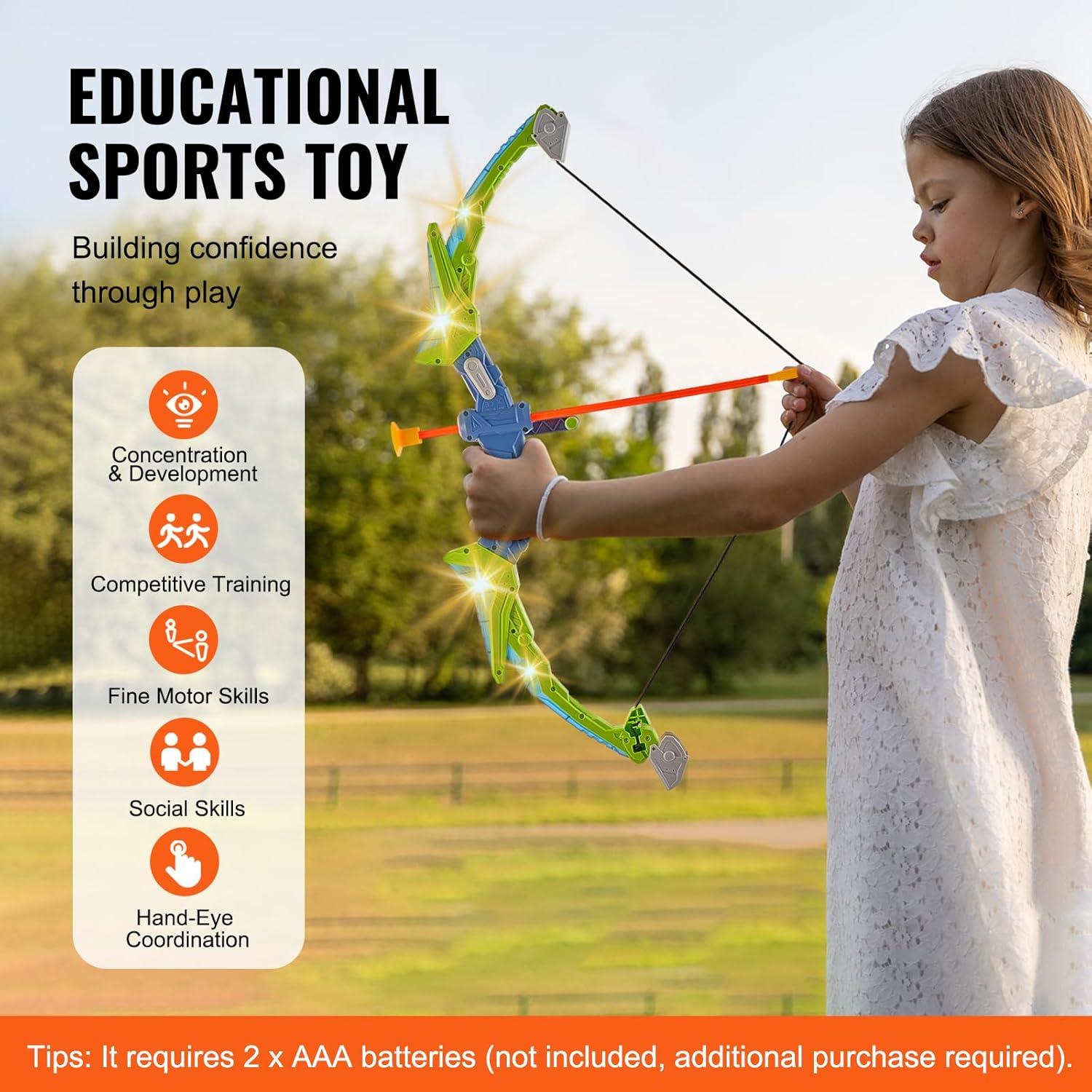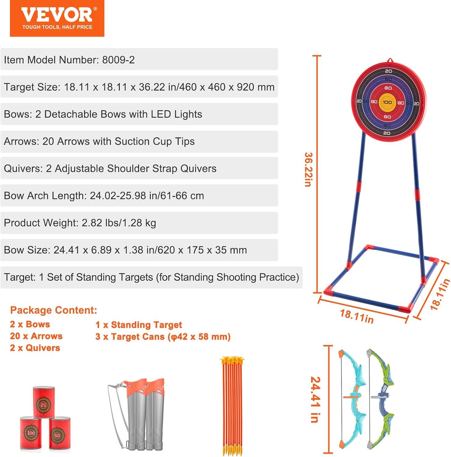 VEVOR Bow and Arrow Set for Kids, 2 Pack LED Light Up Archery Set with 20 Suction Cup Arrows, Indoor Outdoor Toy for Boys Girls Age 4-8 8-12 with Standing Target & 2 Guns, Ideal Gift for Kids(Standing Target with Gun)