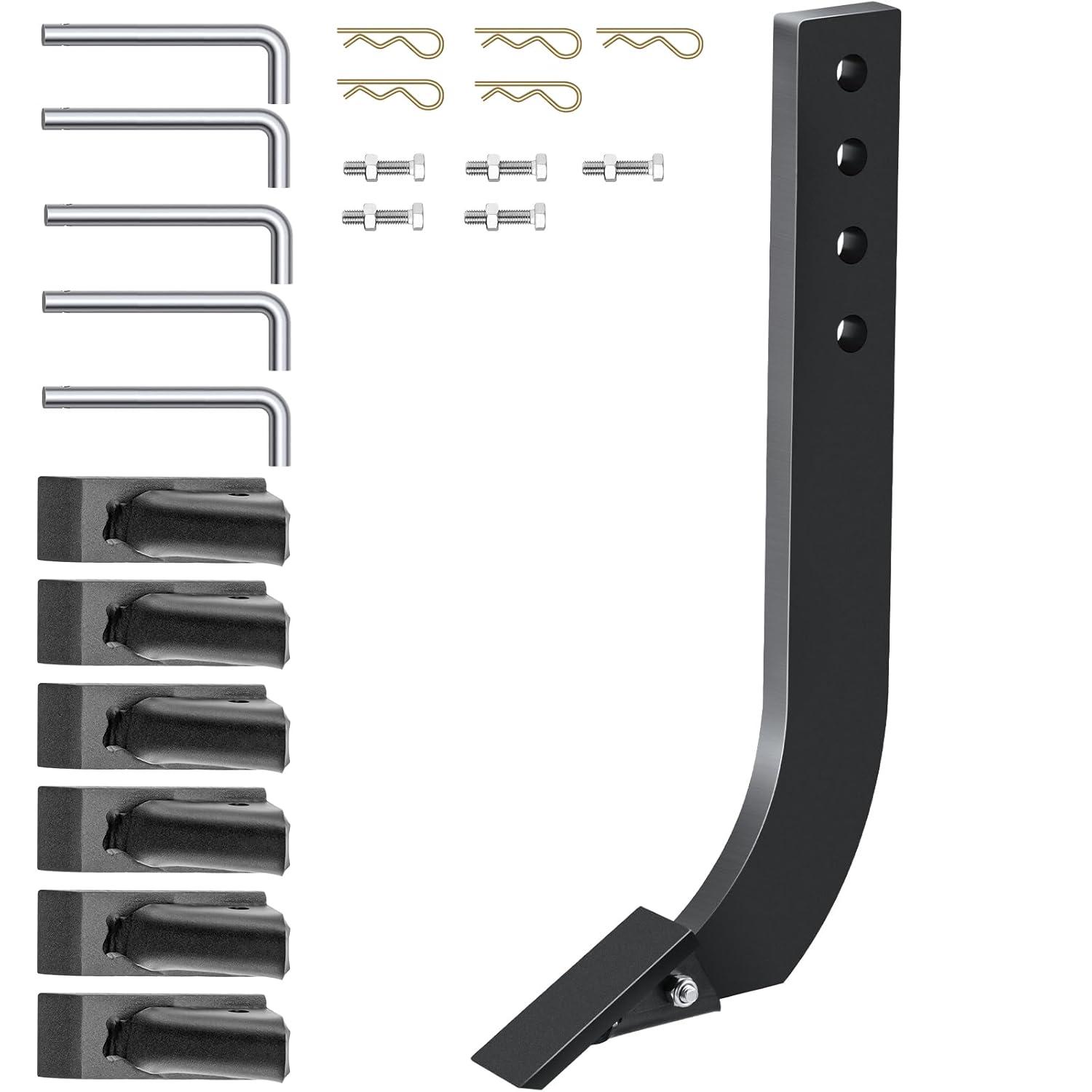 【ADJUSTABLE SHANK】- Hole Interval: 1-1/2″. Hole Diameter: 1/2''. Each shank has four-position adjustment holes that pin to the reinforced frame for maximum efficiency. You could adjust it according to your specific needs.