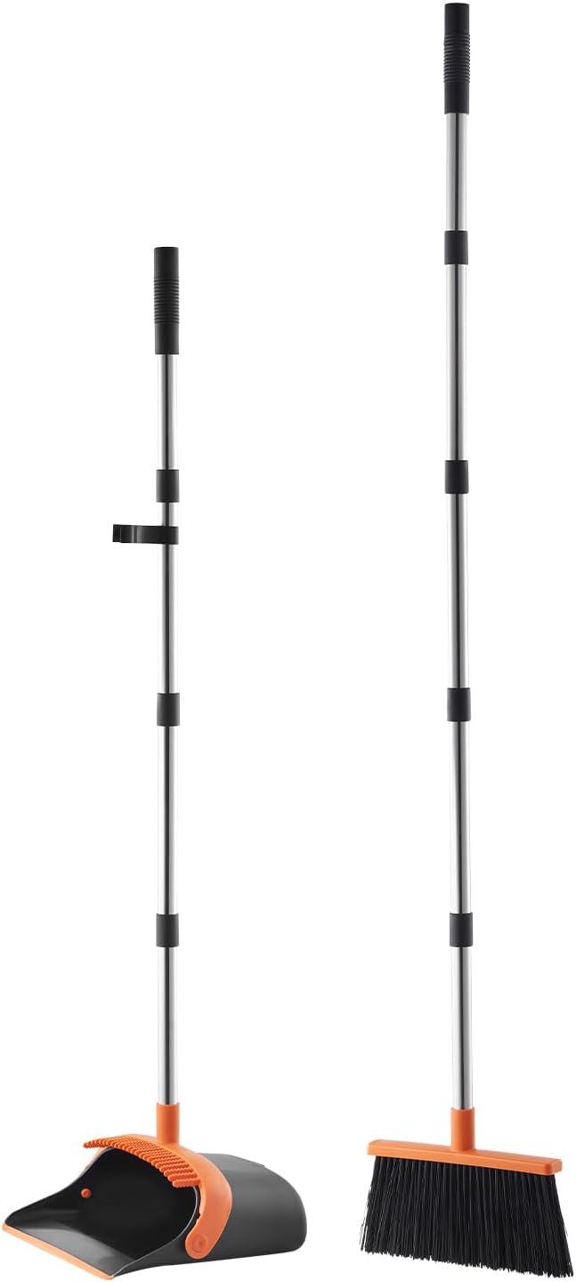Seamless Ground Contact: The rubber edge on the broom and dustpan set ensures a snug fit to the floor, making trash collection more efficient. It works wonders on fine particles like dust and pet hair, and the rubber is flexible and gentle on your floors