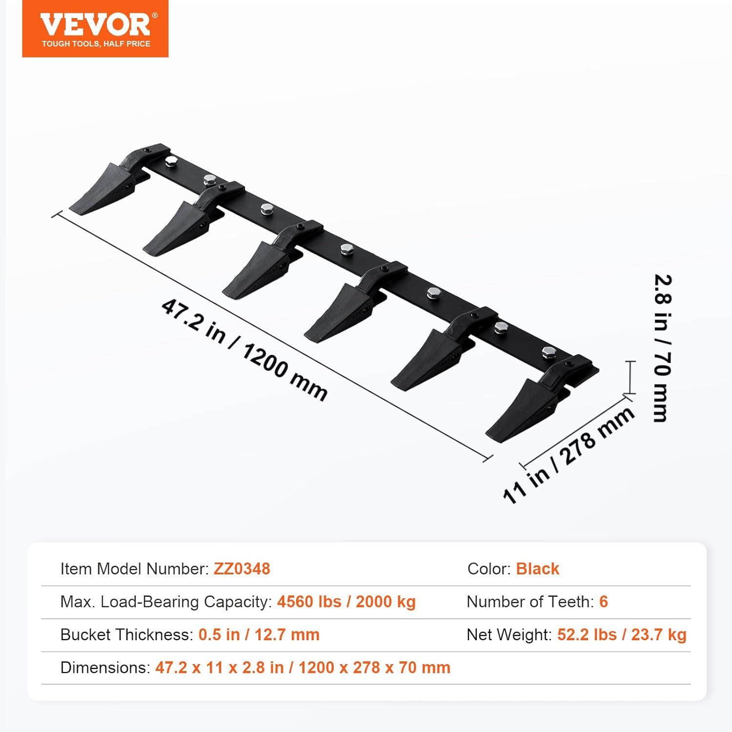 Our clearance event features the best deals on VEVOR Bucket Tooth Bar, 60”, Heavy Duty Tractor Bucket 7 Teeth Bar for Loader Tractor Skidsteer, 4560 lbs Load-Bearing Capacity Bolt On Design, for Efficient Soil Excavation and Bucket Protection(48in) and accessories. Shop now!