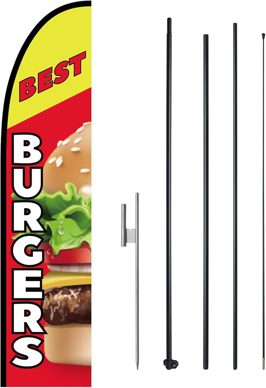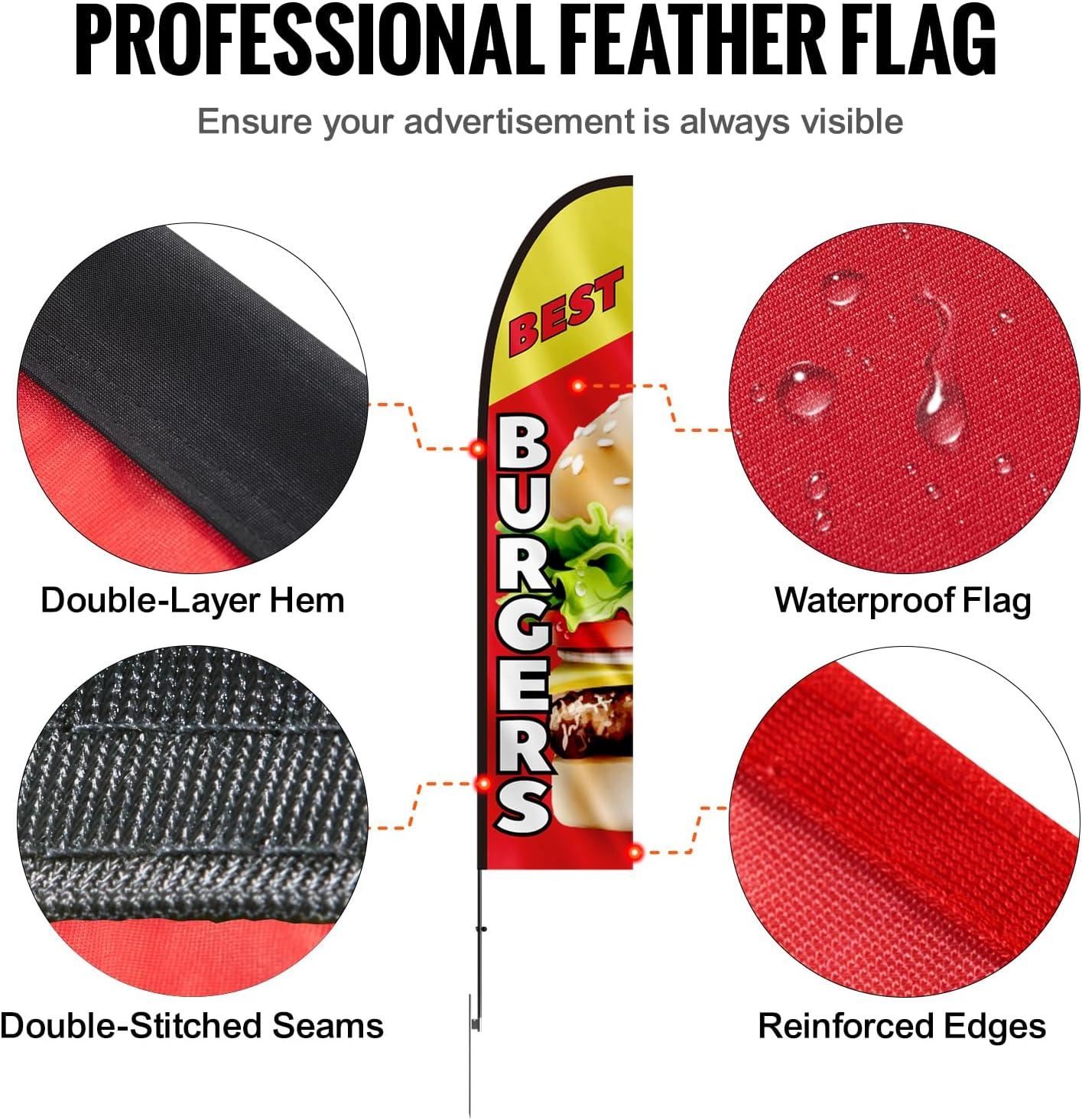 Premium Material: Crafted from high-quality aluminum alloy and fiberglass with a 1mm wall thickness, the burger advertising feather flag kit is both lightweight and strong. The fiberglass top is corrosion-proof and bend-resistant, offering excellent wind and rust resistance for long-term outdoor use.