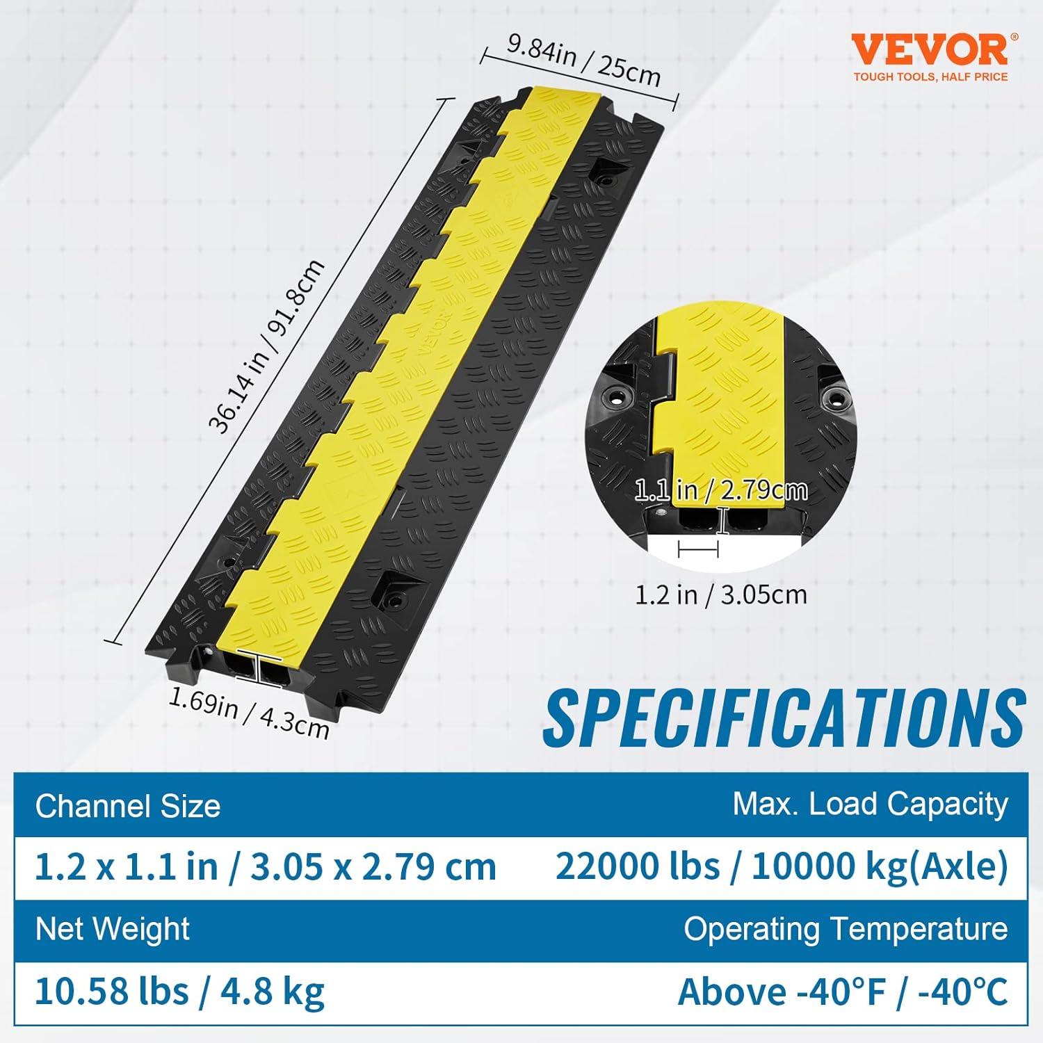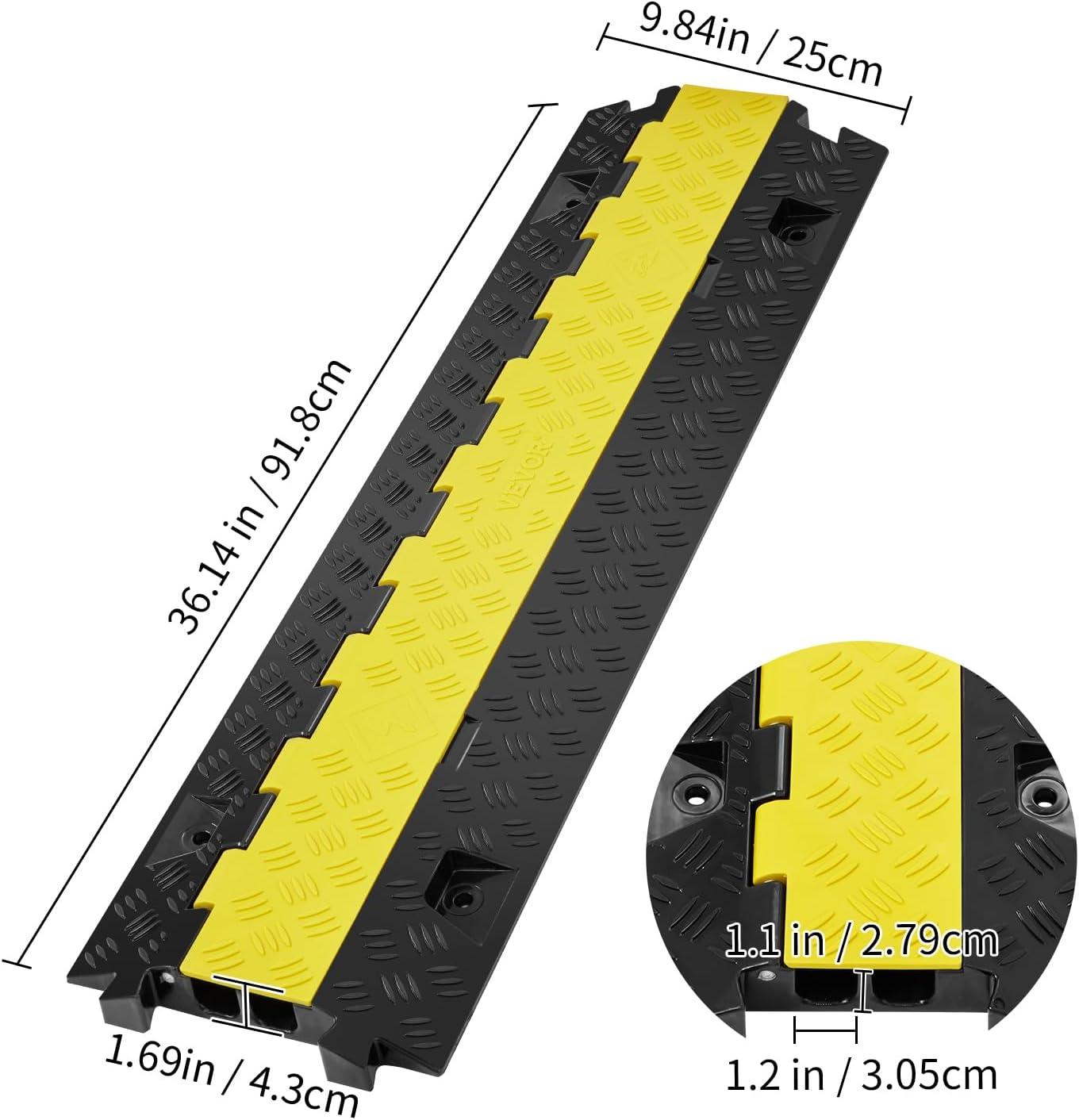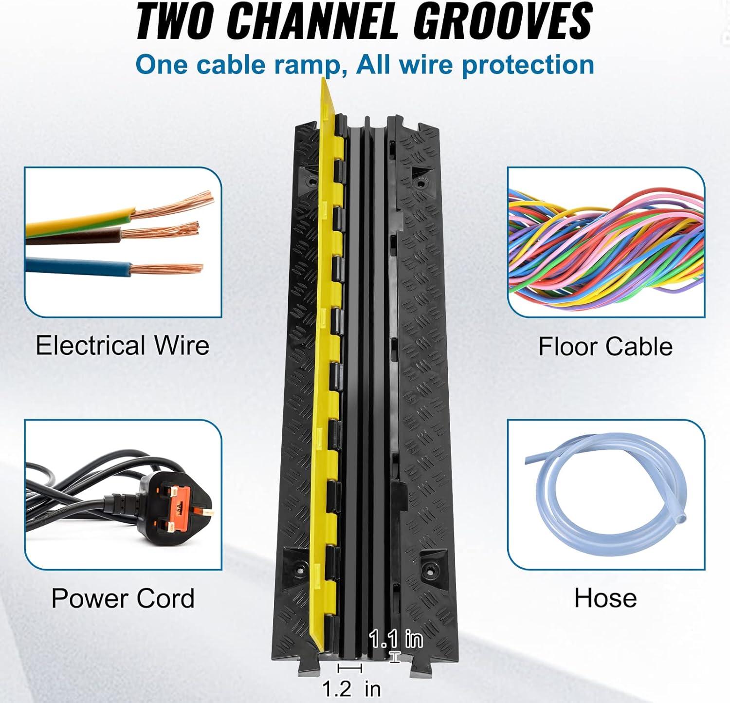 1 Pack 2 Channel: Are you tired of tangled wires? Well, get ready to prevent an accident before it happens! You will receive 1 pack of cable protector ramps measuring 36.14 x 9.84 x 1.69 in. The Dual 1.2 x 1.1 in channel groove design provides enough space for electrical wires, power cords, hoses, and floor cables, protecting them from pedestrians and vehicles.