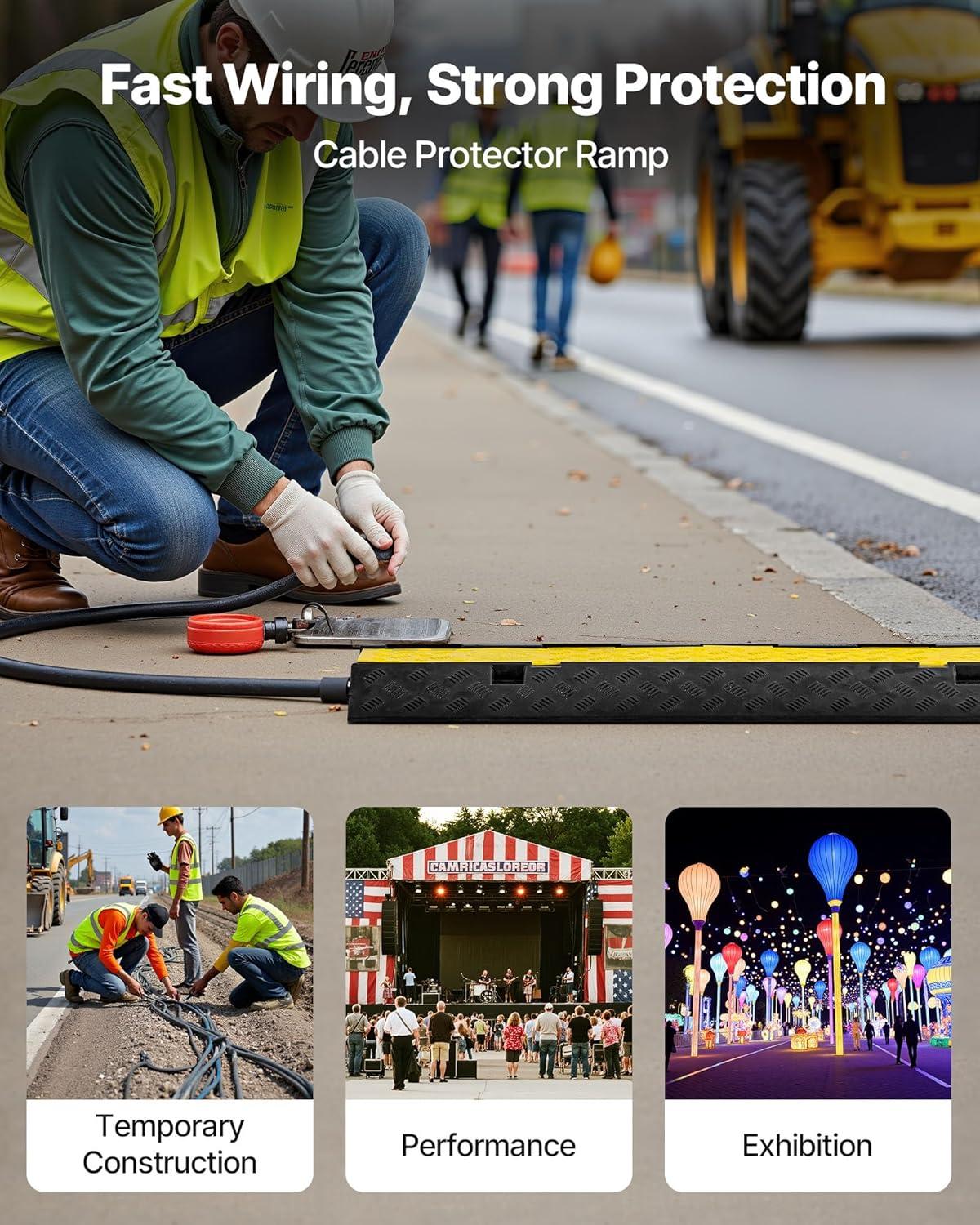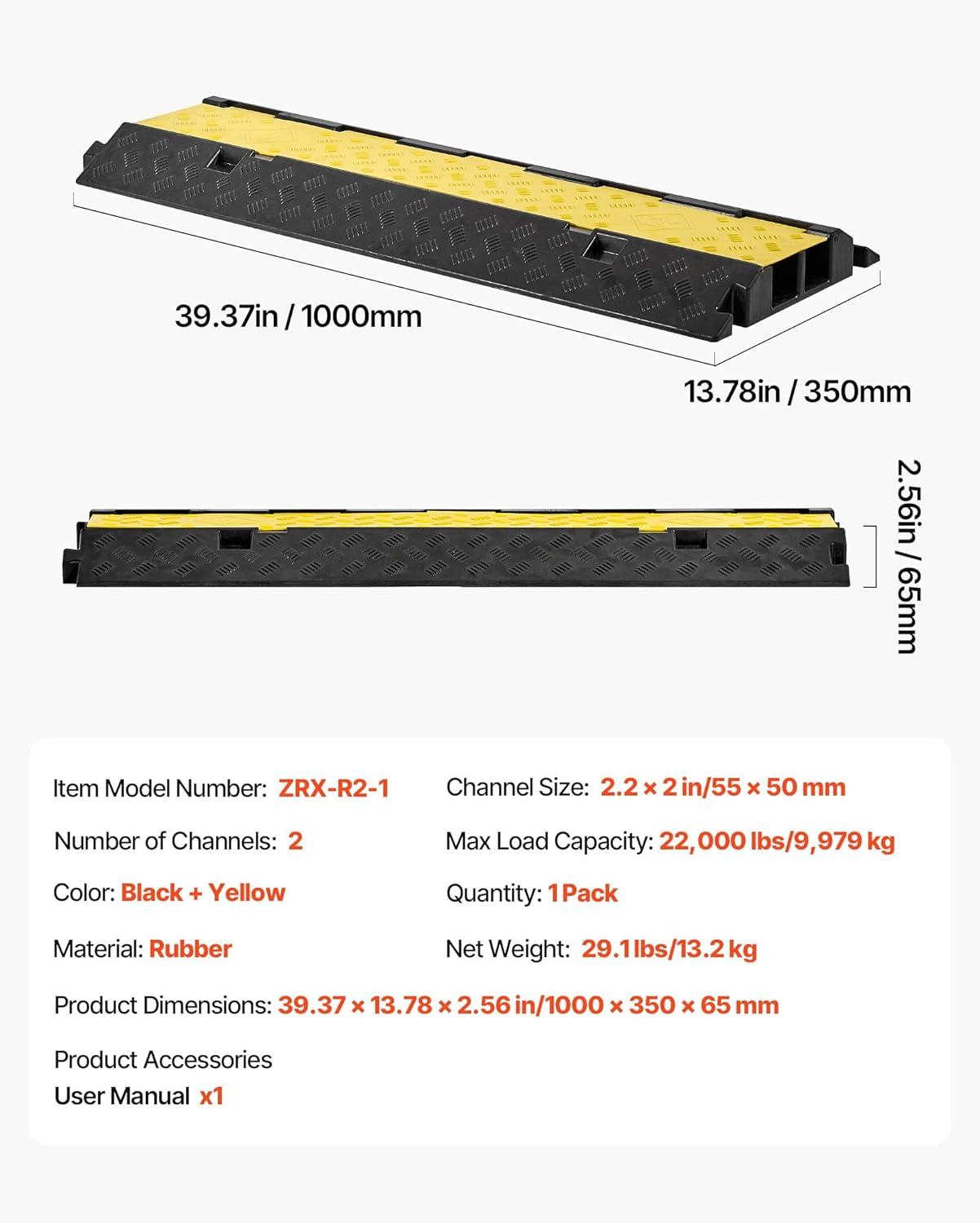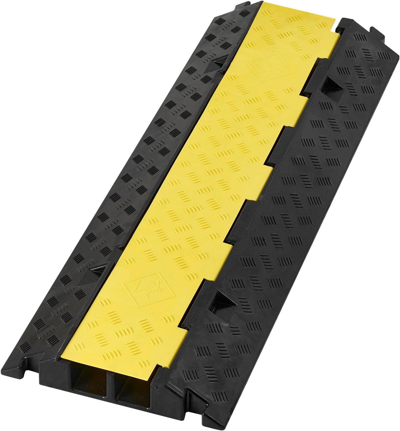 Max. 11000 lbs Capacity: Traditional black+yellow color provides greater visibility at night and in low light environments. The cable protector ramp incorporates a unique design in its appearance to capture the attention of passer-by and drivers to slow off. 11,000Lbs load capacity ensures that you can drive your car over the ramp without affecting the cables running inside.