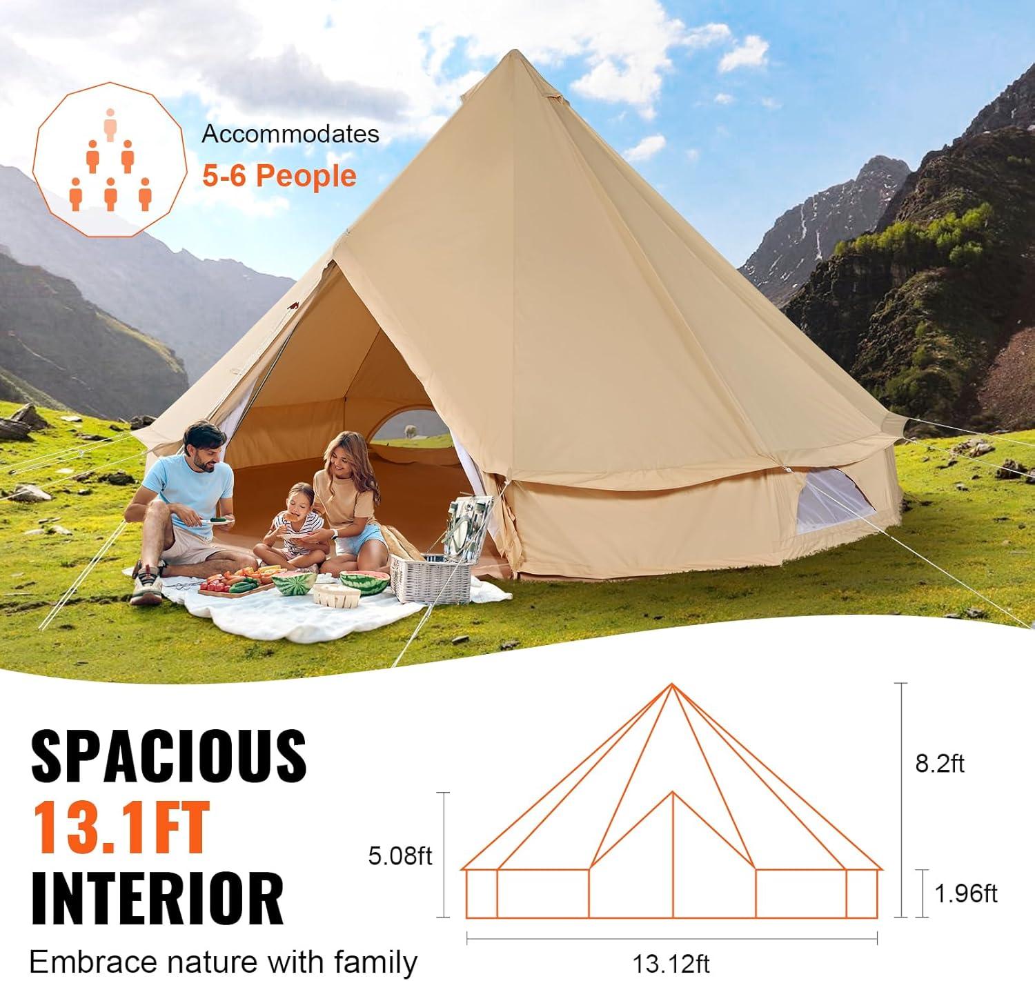 VEVOR Canvas Tent Bell, Yurt 4 Seasons for Camping with Stove Jack, Breathable Holds up to 4 People, Family Camping Outdoor Hunting Party(4m/13.12ft)