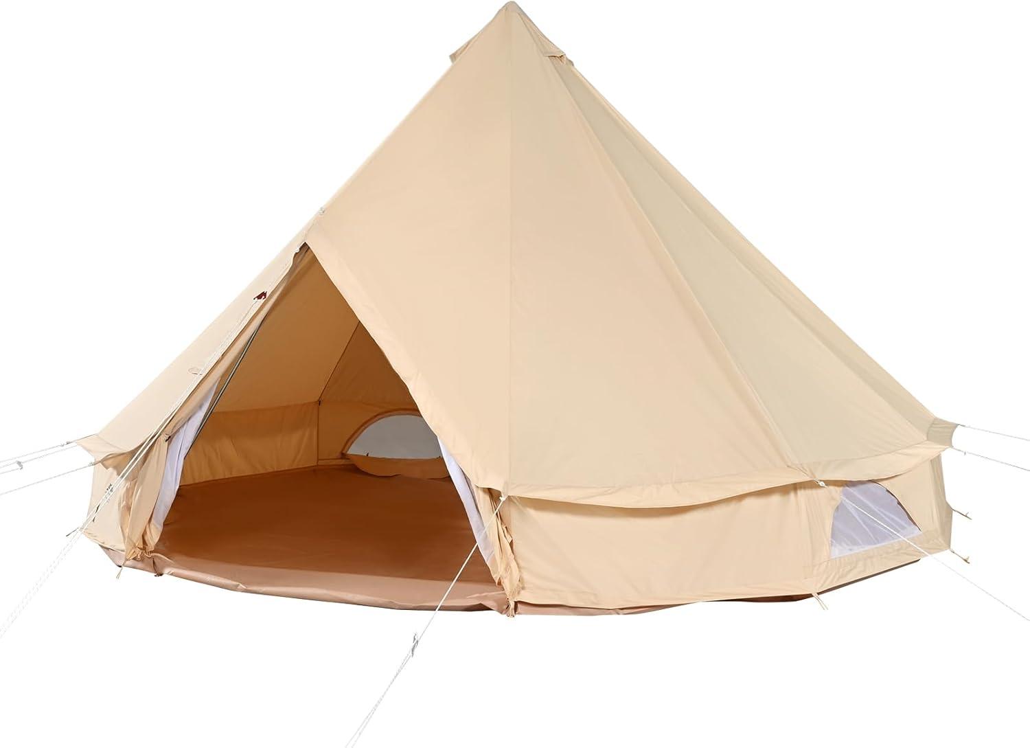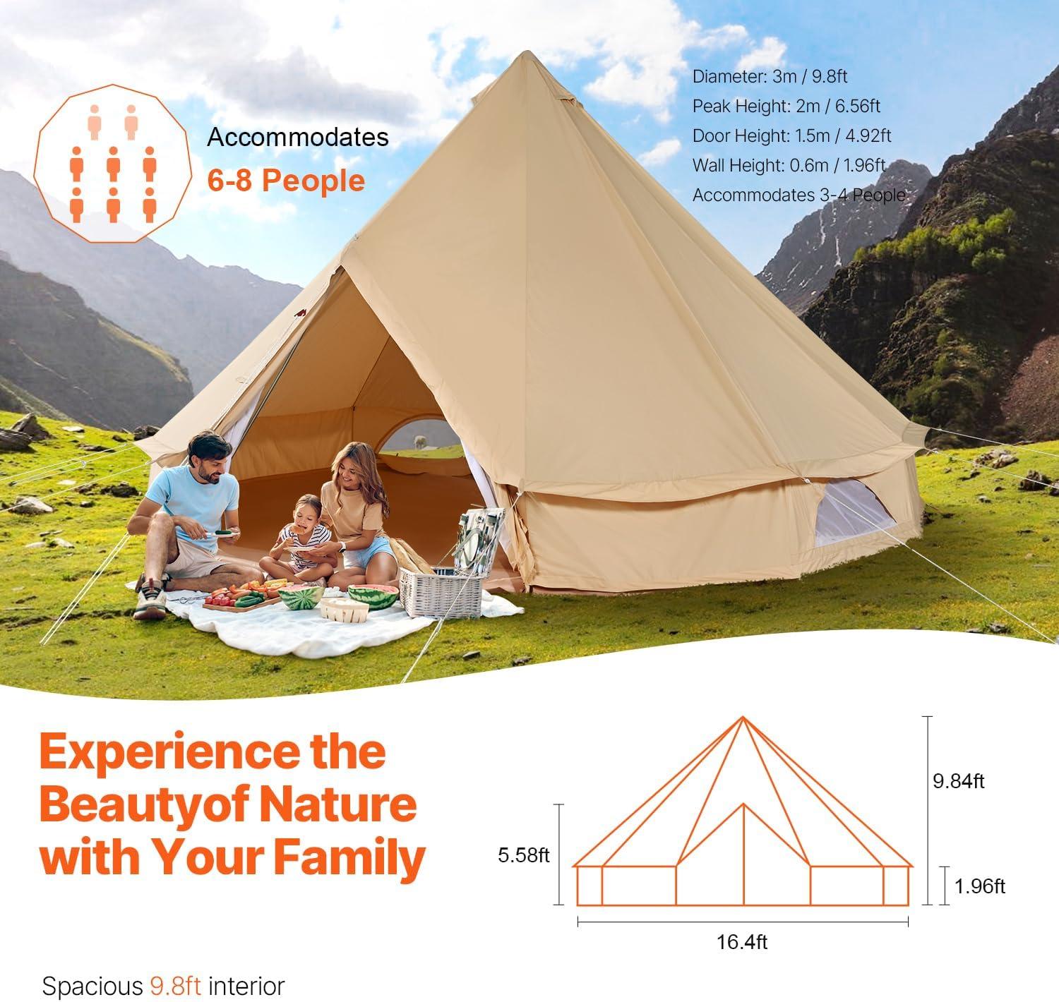 Durable Materials: Crafted with TC technology cotton, our yurt tent boasts durability and breathability, reducing condensation inside and ensuring comfort in all weather conditions. Sturdy galvanized iron center and door poles ensure stability.