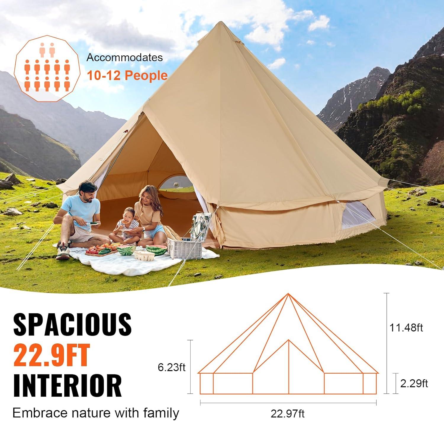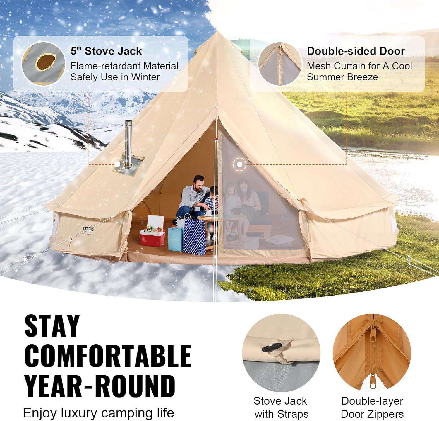 VEVOR Canvas Tent Bell, Yurt 4 Seasons for Camping with Stove Jack, Breathable Holds up to 4 People, Family Camping Outdoor Hunting Party(7m/22.97ft)