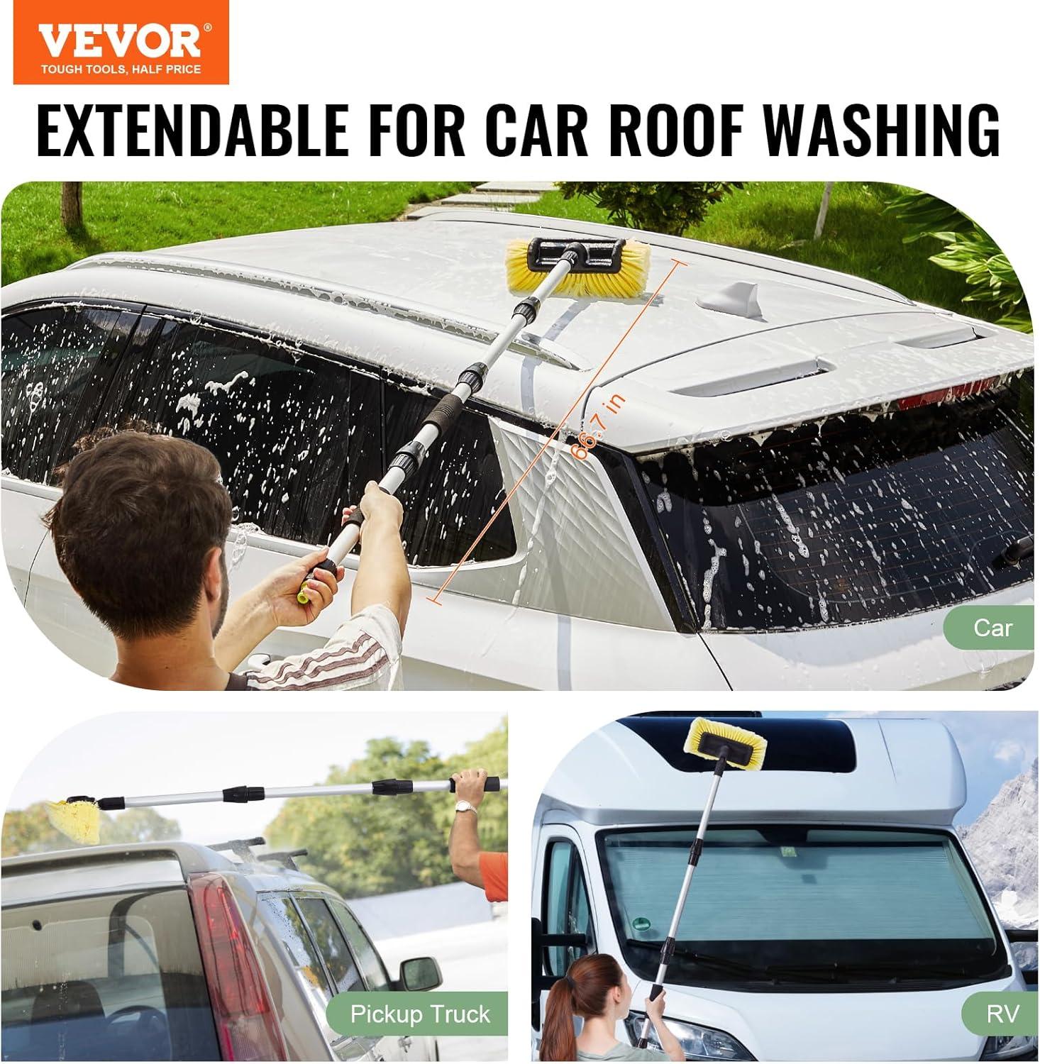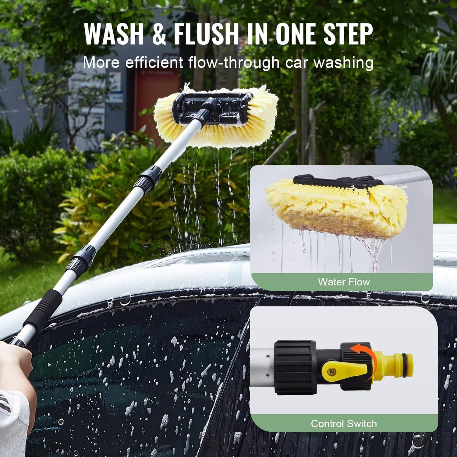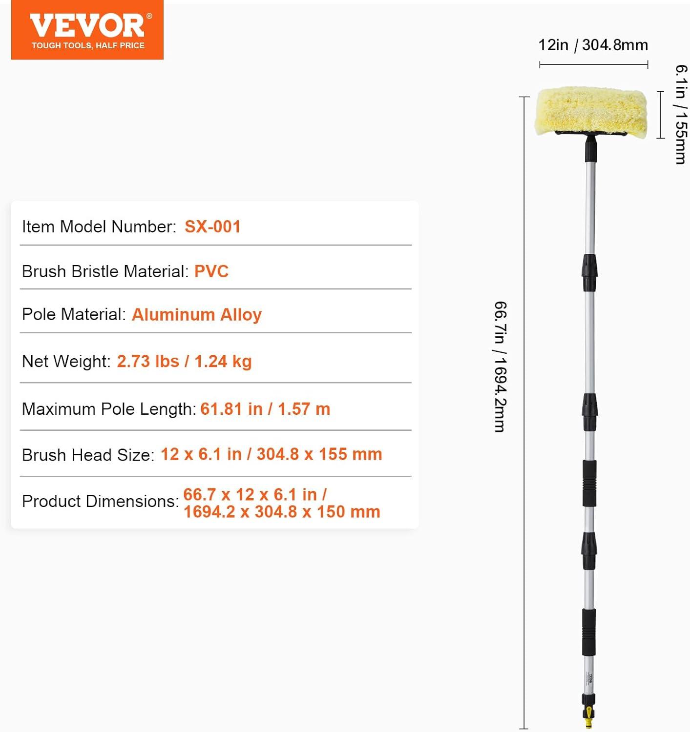 VEVOR Car Wash Brush, 66.7-Inch Extendable Car Washing Brush with Long Handle, 12″ Scratch-Free Soft PVC Bristle Head, Flow-Thru Car Cleaning Mop Kit with Water Hose Attachment for Car RV Boat(Soft PVC Bristle head)