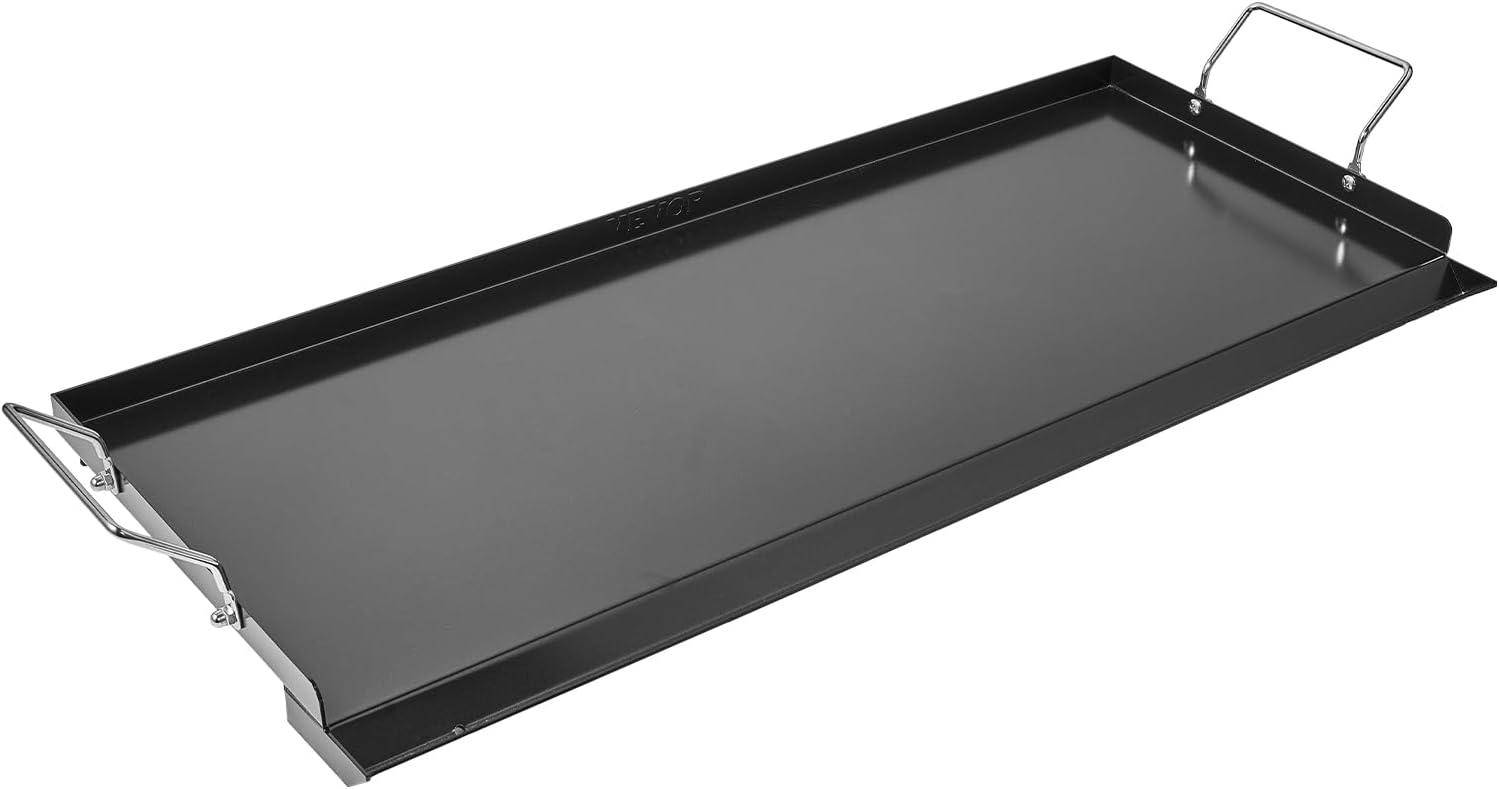 VEVOR Carbon Steel Griddle, Flat Top Plate, Griddle for BBQ Charcoal/Gas Gril with 2 Handles, Rectangular Flat Top Grill with Extra Drain Hole for Tailgating and Party(24″ x 16″ x 2″)
