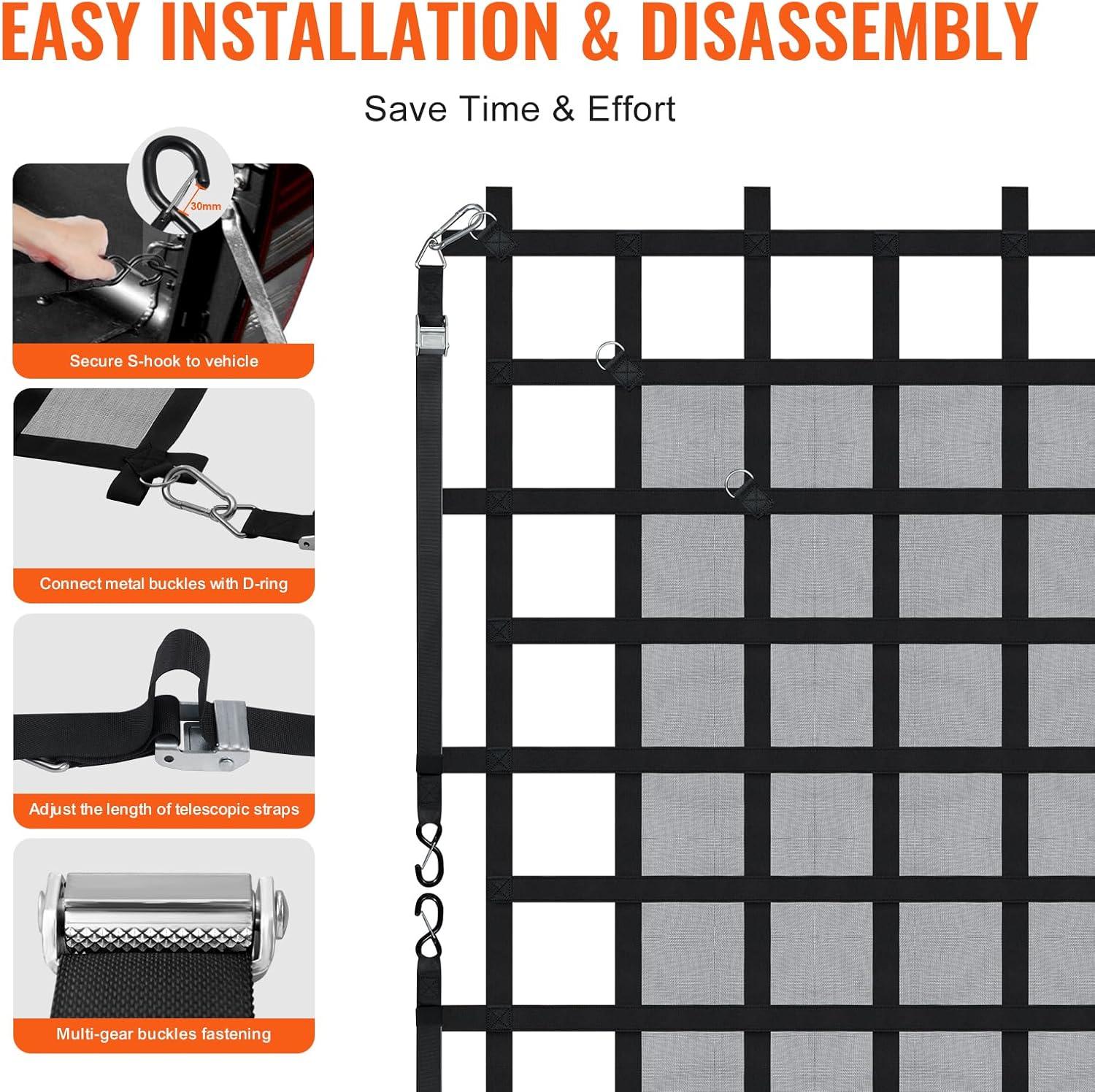 Easy Installation for Various Vehicles: Using the 4 S-hooks in the accessories to connect the vehicle, you can easily secure the cargo net to various vehicles for use, whether it's a truck, trailer, pickup, jeep, SUV or even a boat. (Tip: Make sure that you've secured the anchors or bolts on your vehicle!)